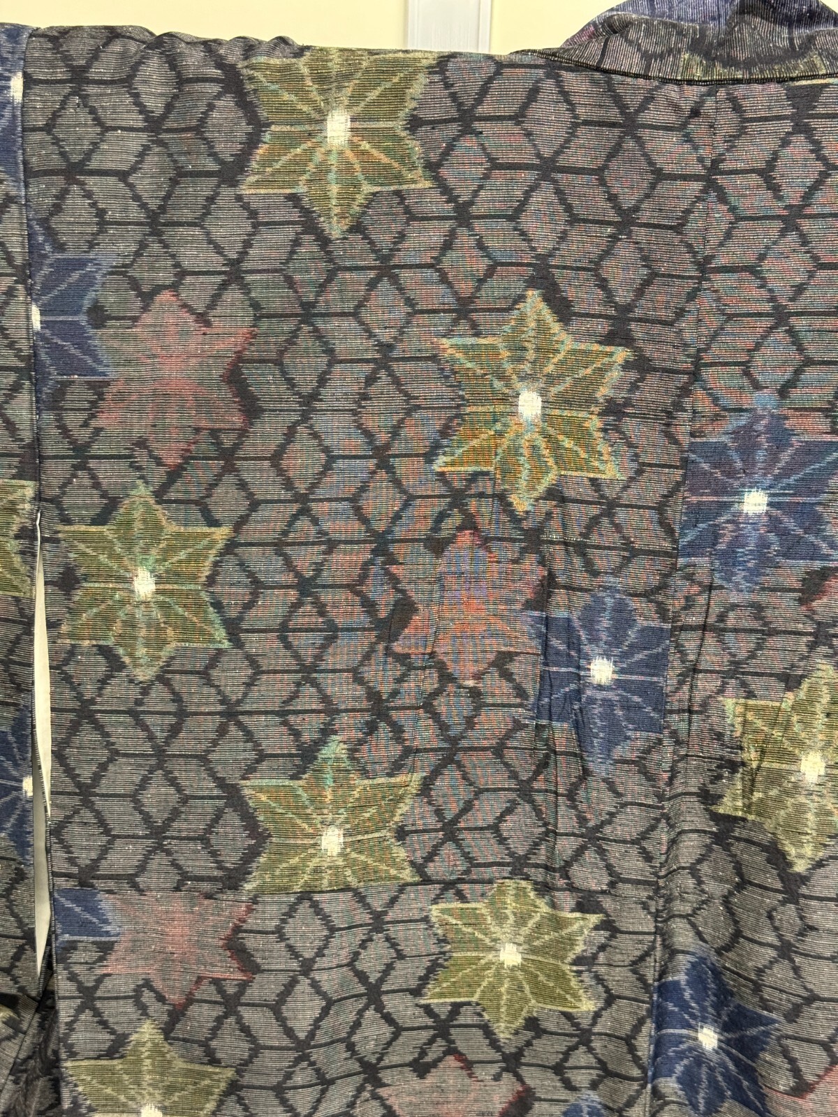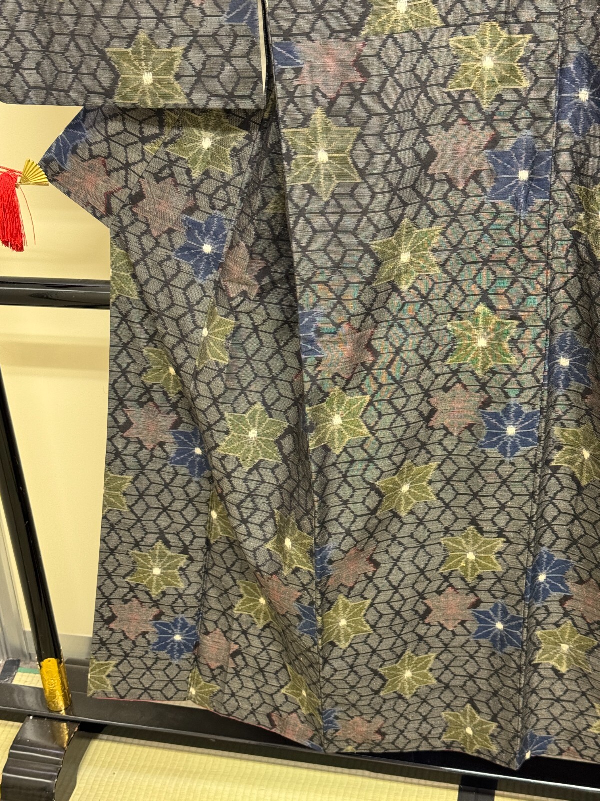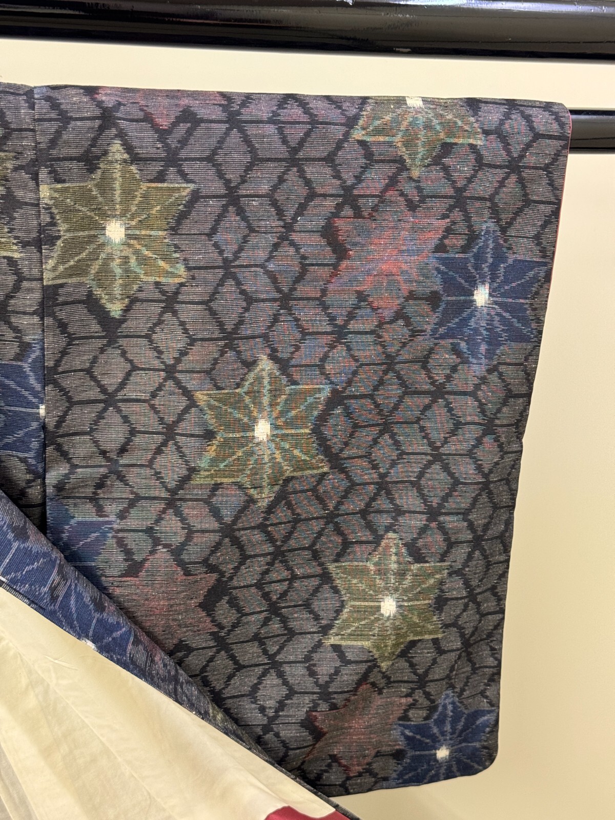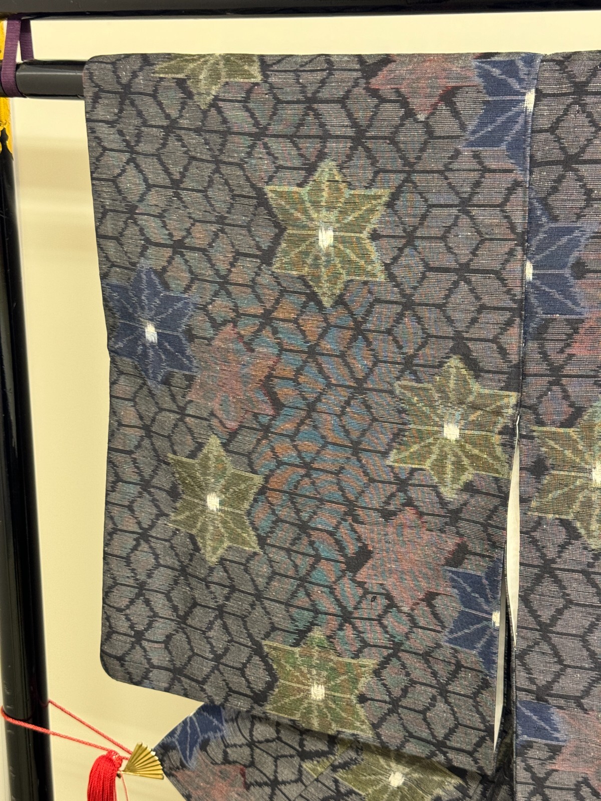 как выглядит Japanese Vintage Kimono Pure Silk Black Blue Expensive Tsumugi Dirt Height 57in фото