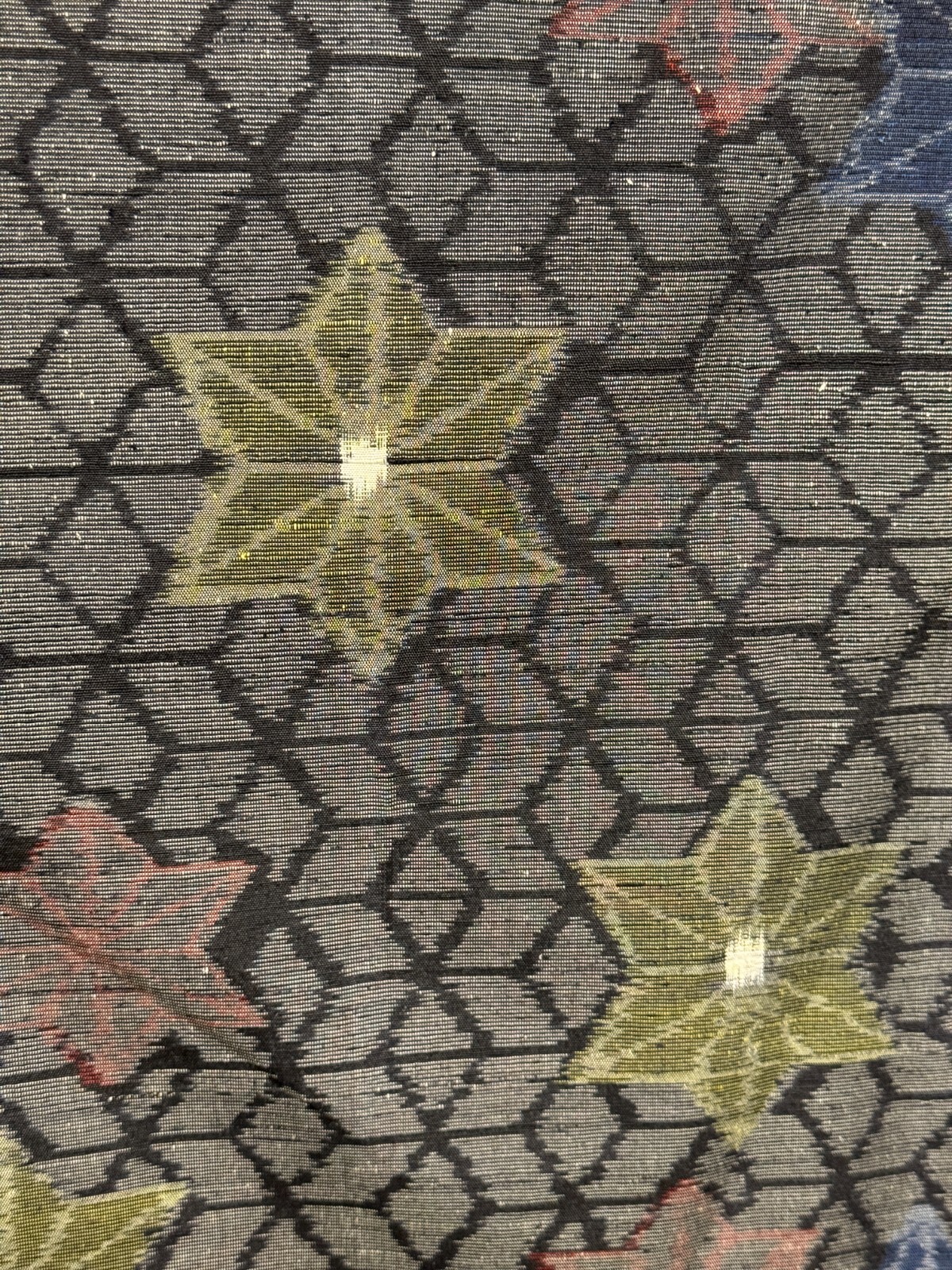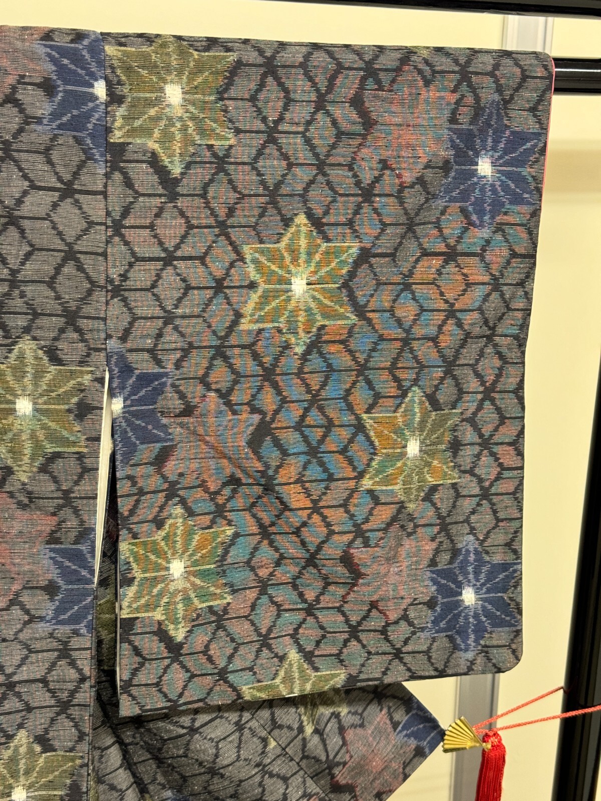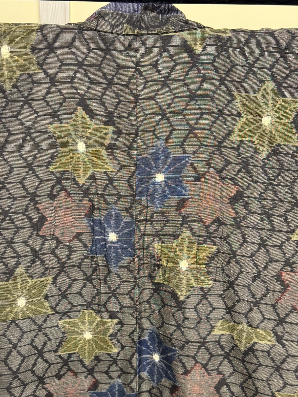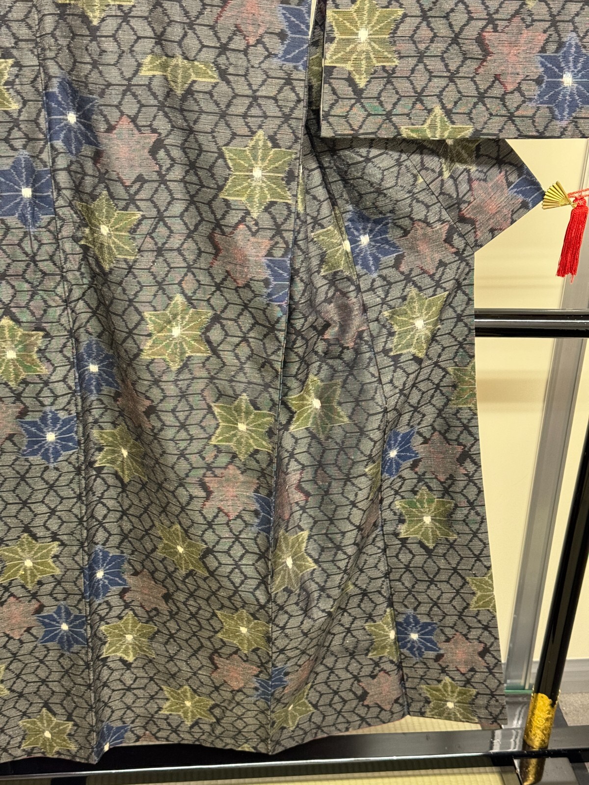 как выглядит Japanese Vintage Kimono Pure Silk Black Blue Expensive Tsumugi Dirt Height 57in фото