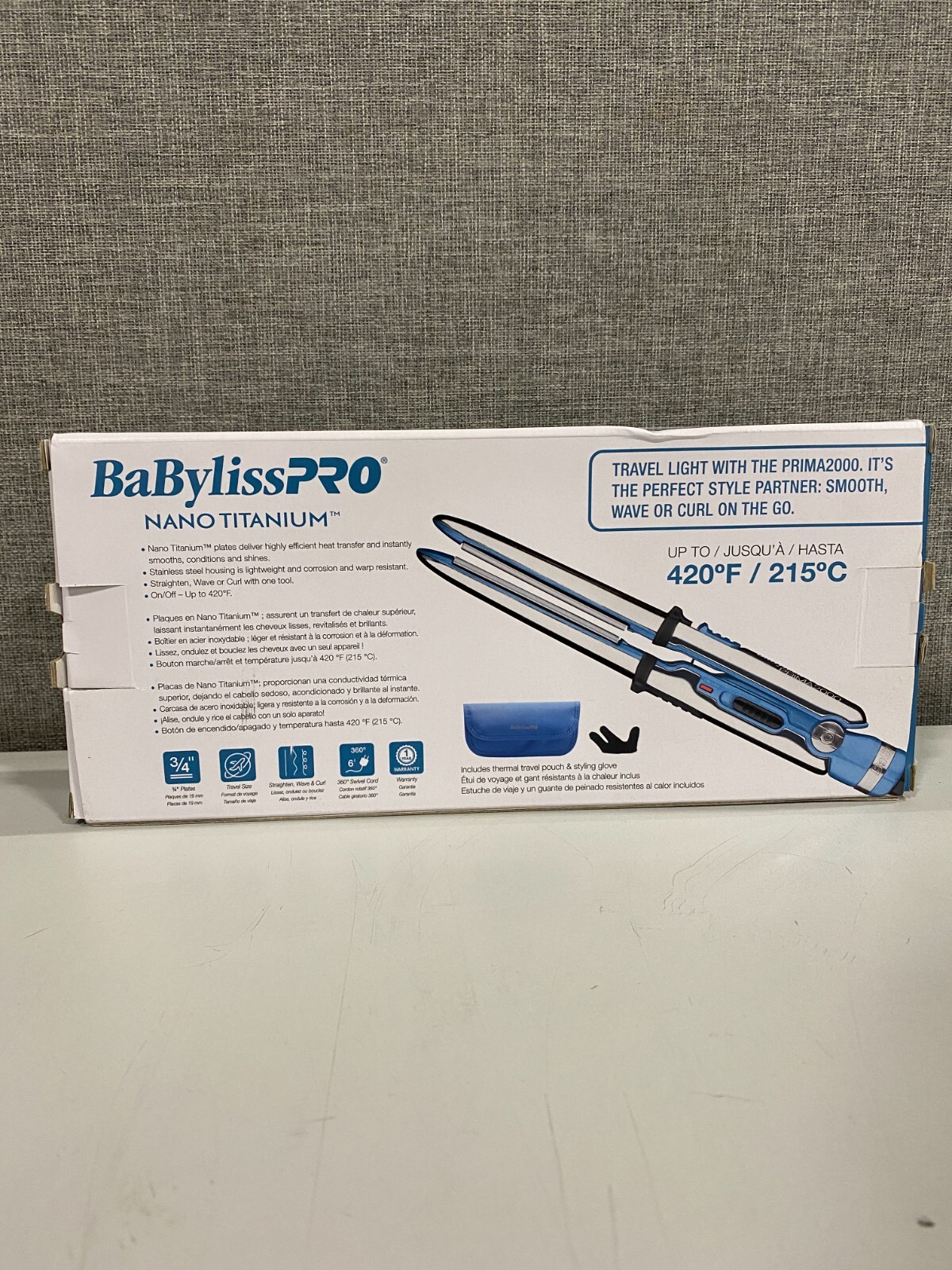 BaBylissPRO Nano Titanium Prima2000 Ionic Styling Iron, 3/4 stainless steel
