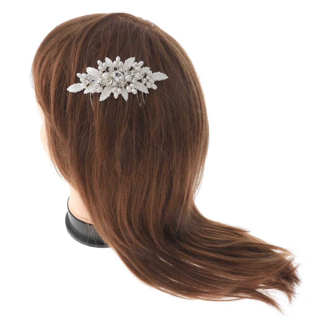 как выглядит Silver Tone Metal Rhinestone Hair Comb With Synthetic Pearl H3948-SWH фото
