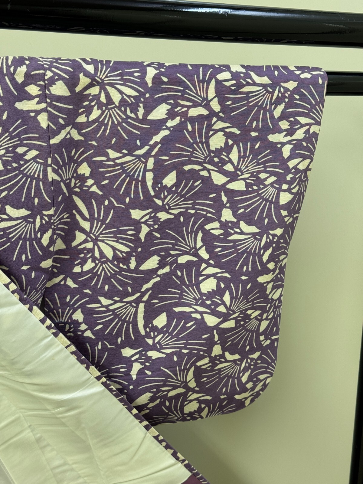 как выглядит Japanese Vintage Kimono Pure Silk purple expensive flower dirt Height 60.62in фото