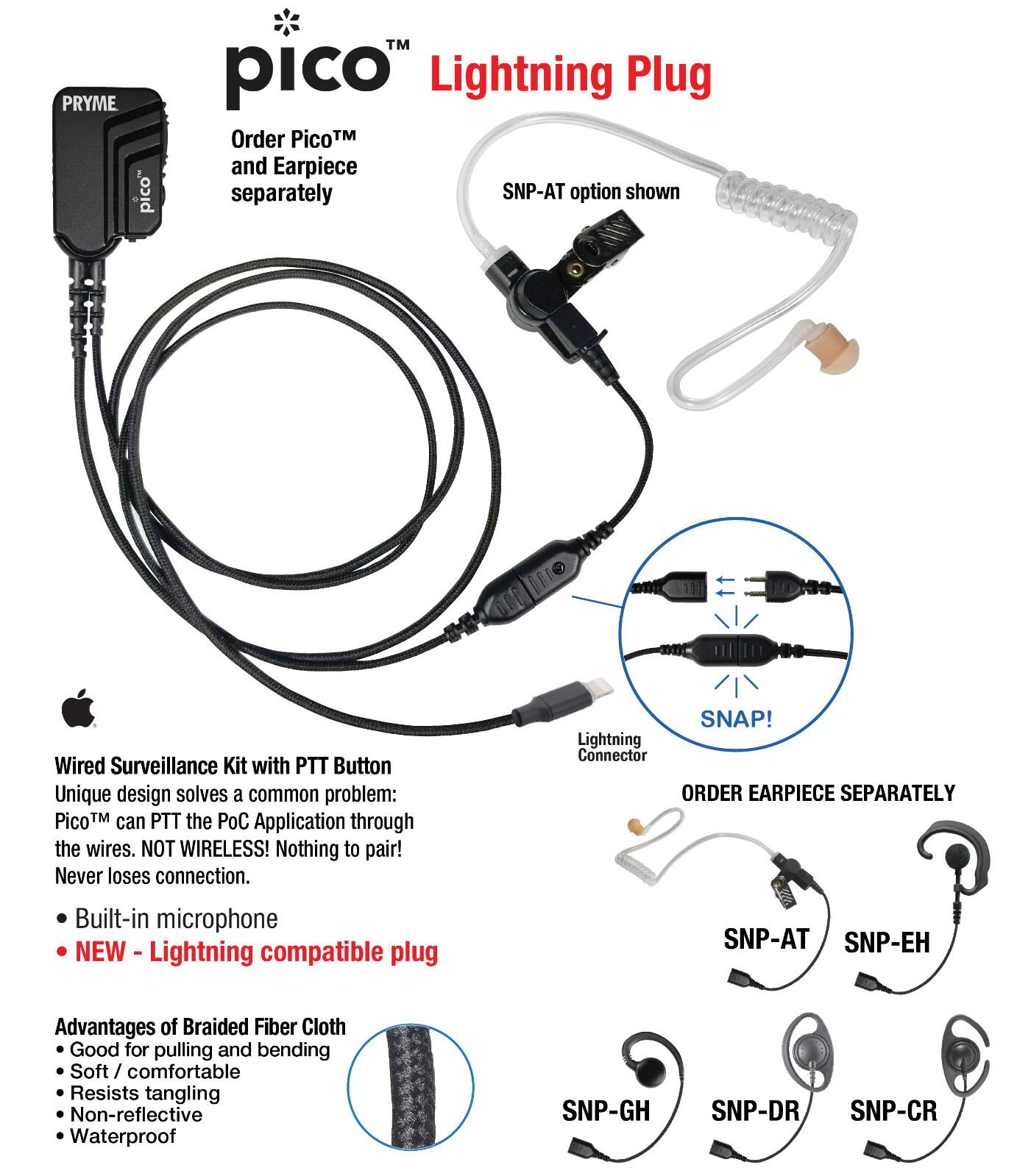 PRYME PICO-Lightning Wired Lapel Mic PICO-Lightning-AT
