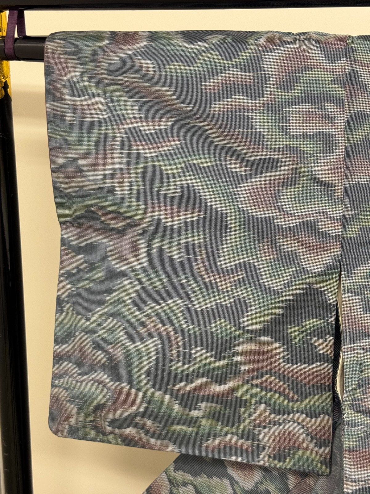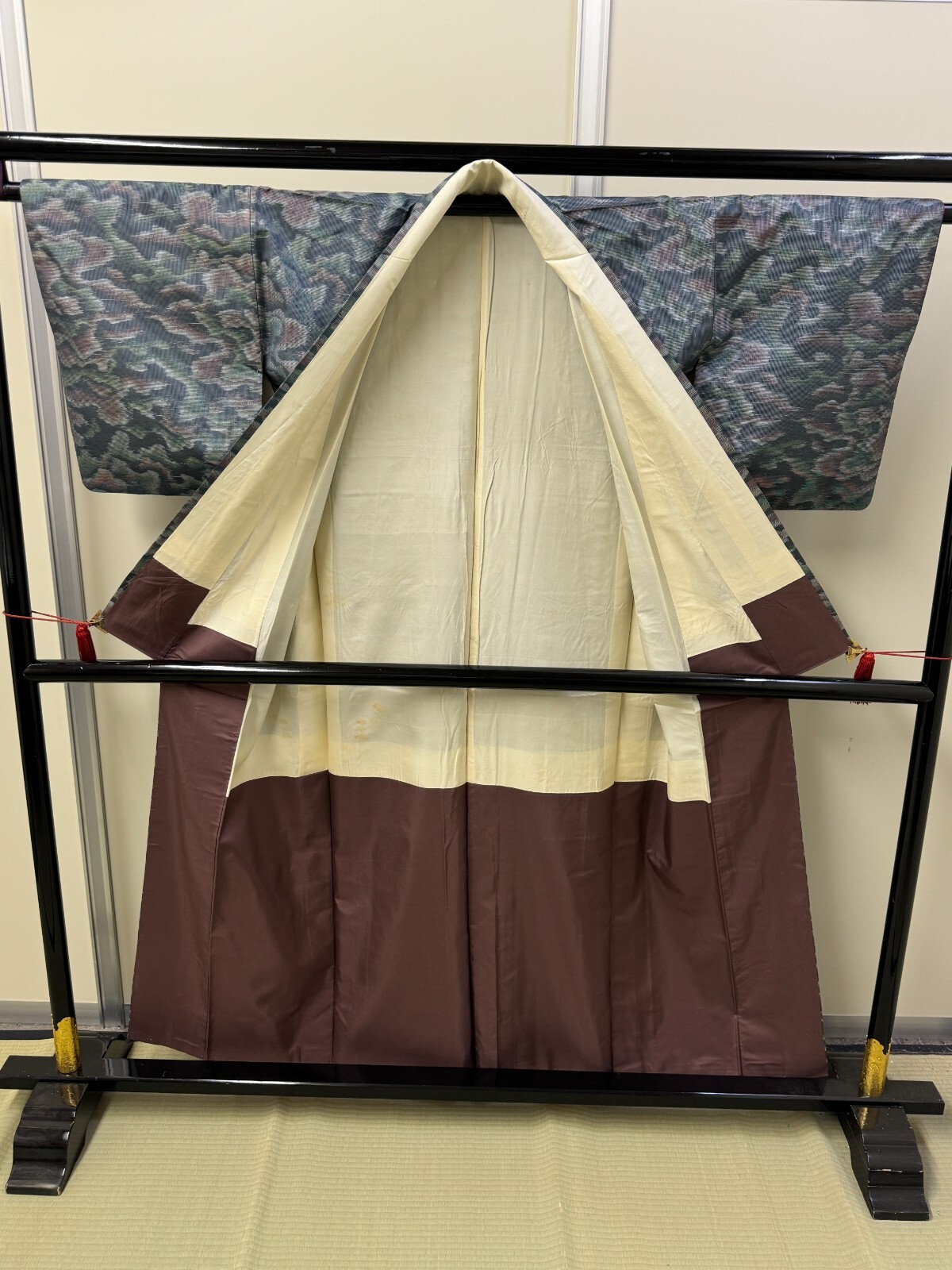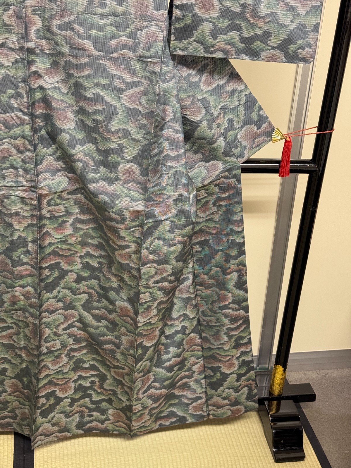 как выглядит Japanese Vintage Kimono Pure Silk Grey Oshima Expensive Cloud Height 62.2in фото
