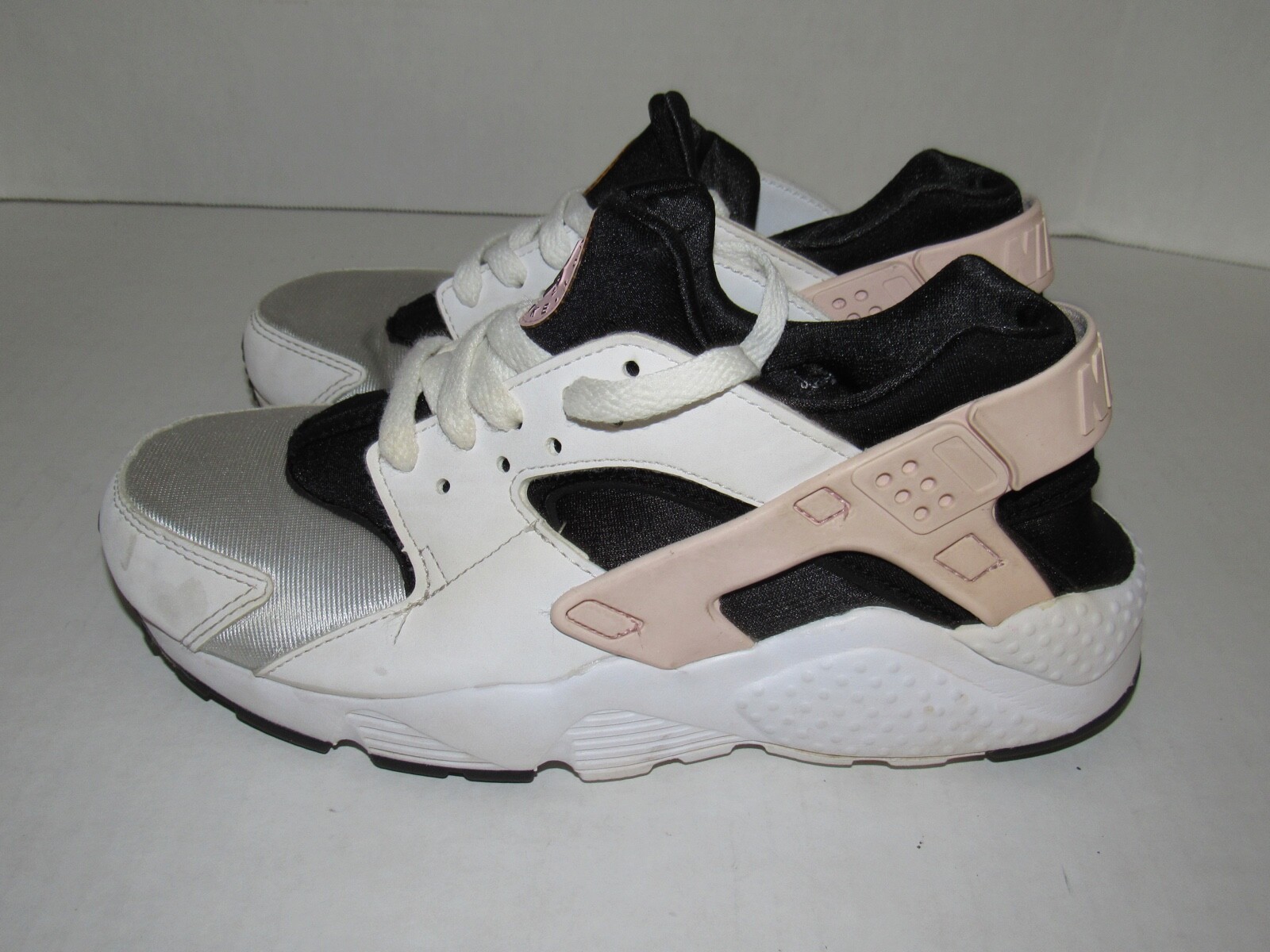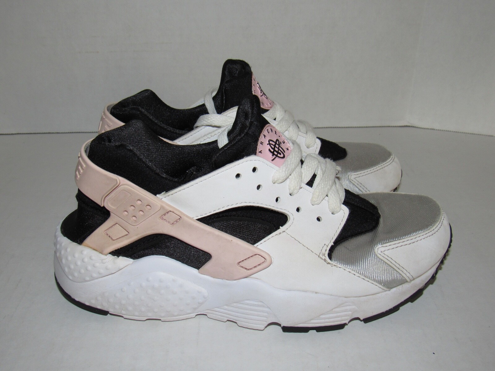 как выглядит Nike Huarache Black White Silver Pink Shoes 654275-115 Girls Youth Size 5.5Y фото