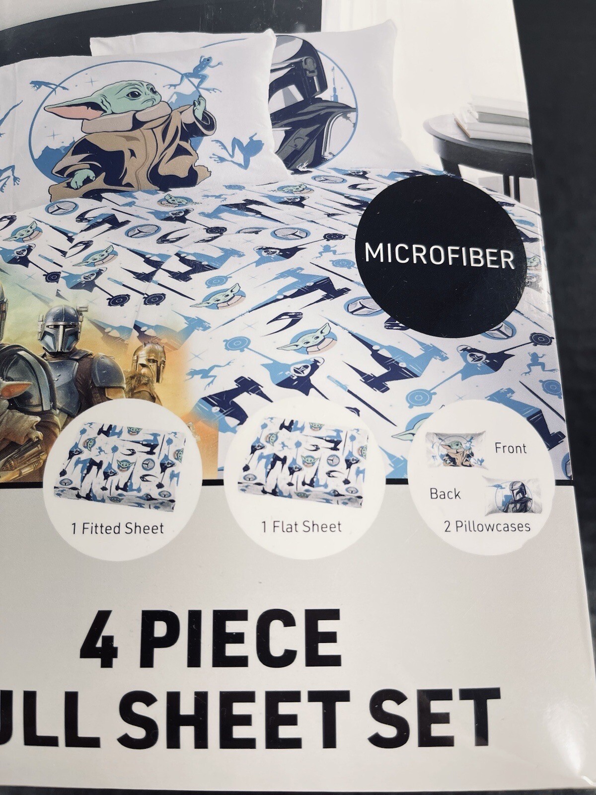 Star Wars The Mandalorian Grogu Baby Yoda 4 Piece Full Sheet Set w-Pillow Case