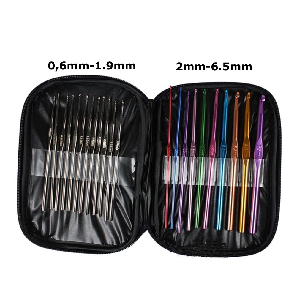 22pcs Set 0.6mm-6.5mm Crochet Hooks Needles Knit Weave Colored Aluminum Portable