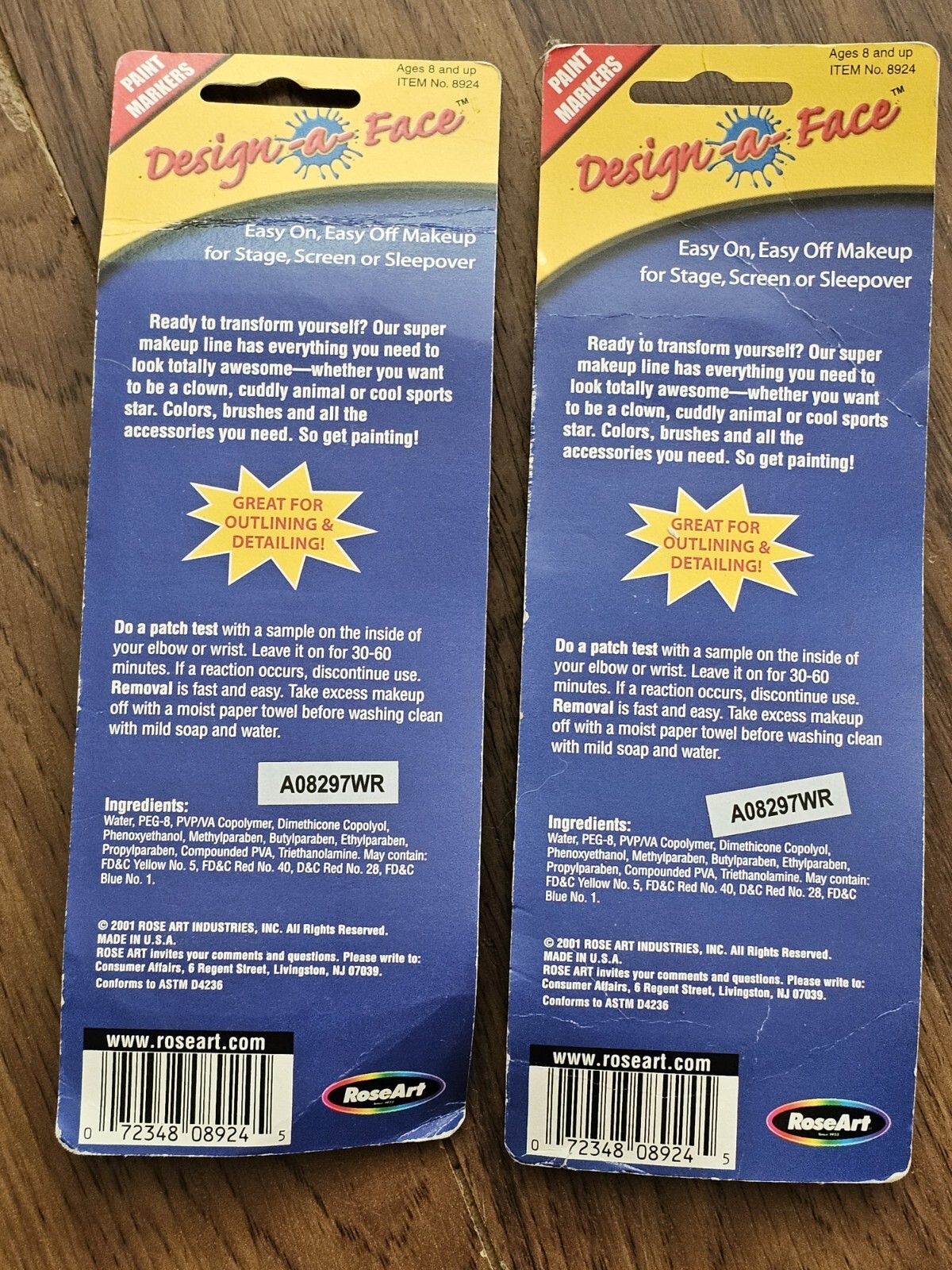 RoseArt Design-A-Face Vintage NOS Face Paint 2 Packages 2001 Prof Makeup Marker