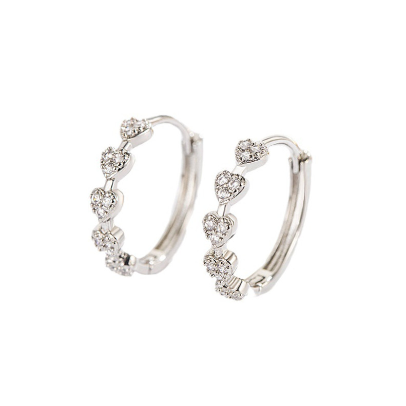 Women 925 Sterling Silver Heart CZ Huggie Hoop Piercing Earrings 14mm F16