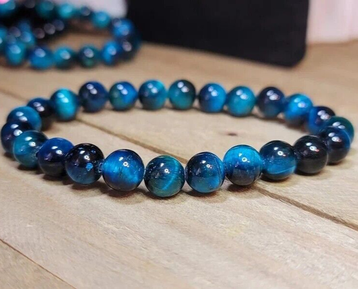 как выглядит Natural 8MM Blue Tigers Eye Bead Healing Reiki Balance Men Women Bracelet Gifts фото