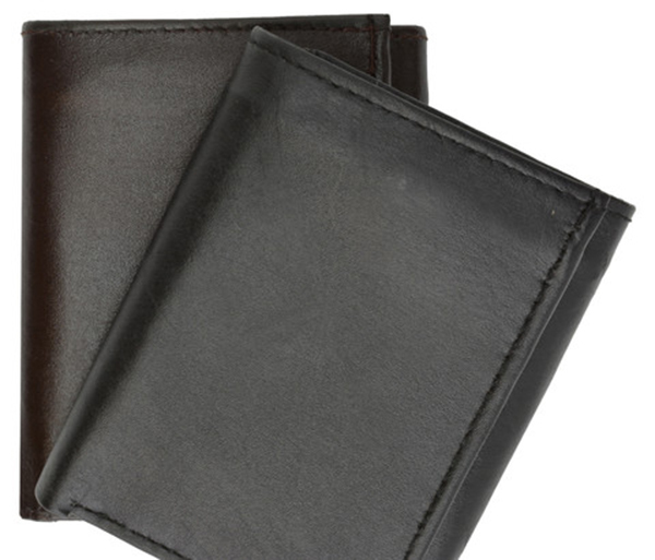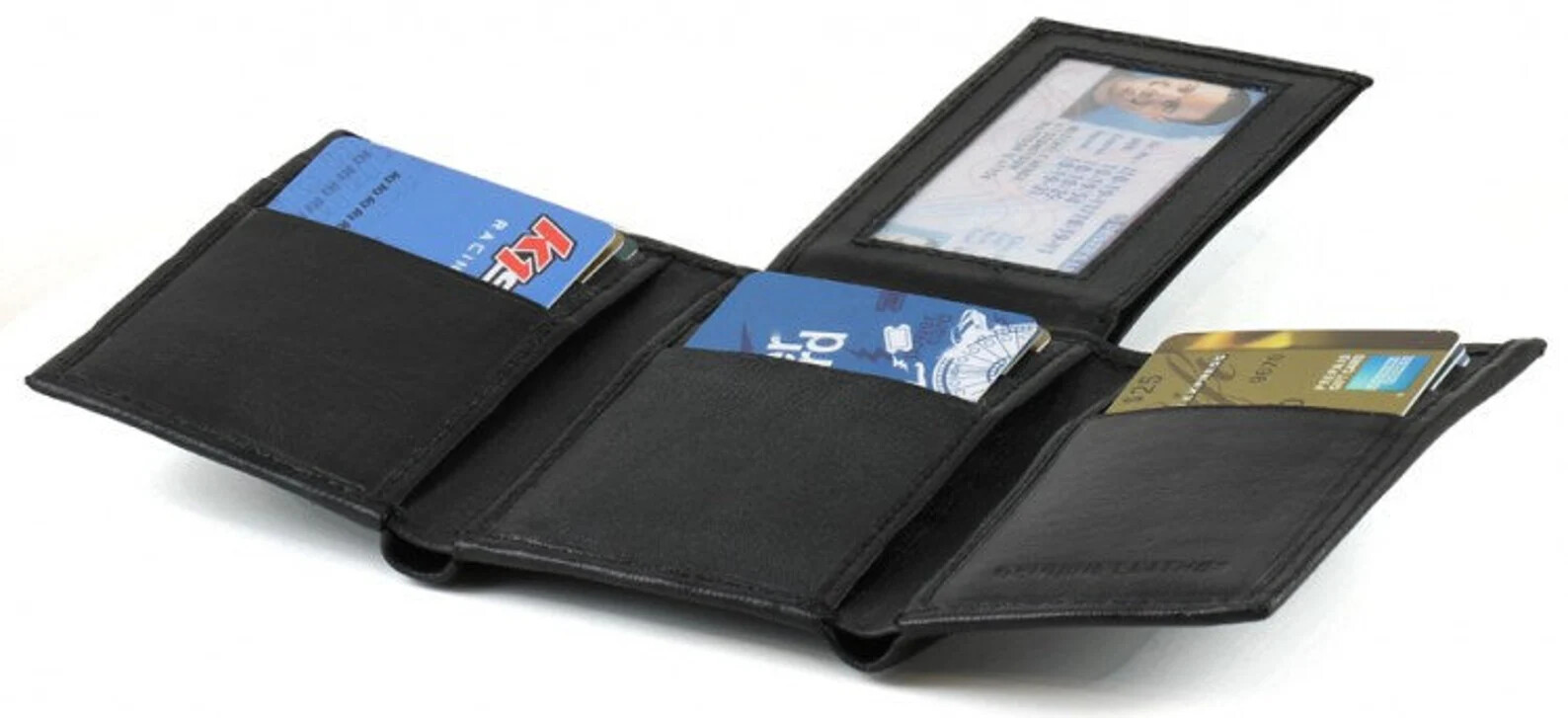 GENUINE LEATHER BLACK MEN TRIFOLD WALLET 9 Credit Card Flip Top ID Window