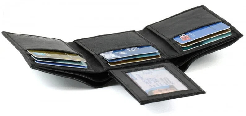 как выглядит GENUINE LEATHER BLACK MEN TRIFOLD WALLET 9 Credit Card Flip Top ID Window фото