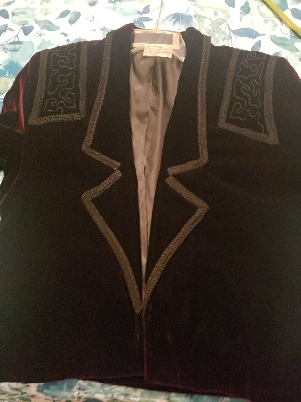 как выглядит Vintage Adam Douglas VELVET Jacket Burgundy Size Medium Embroidered Cropped фото