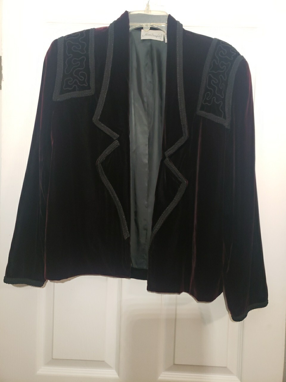 Vintage Adam Douglas VELVET Jacket Burgundy Size Medium Embroidered Cropped