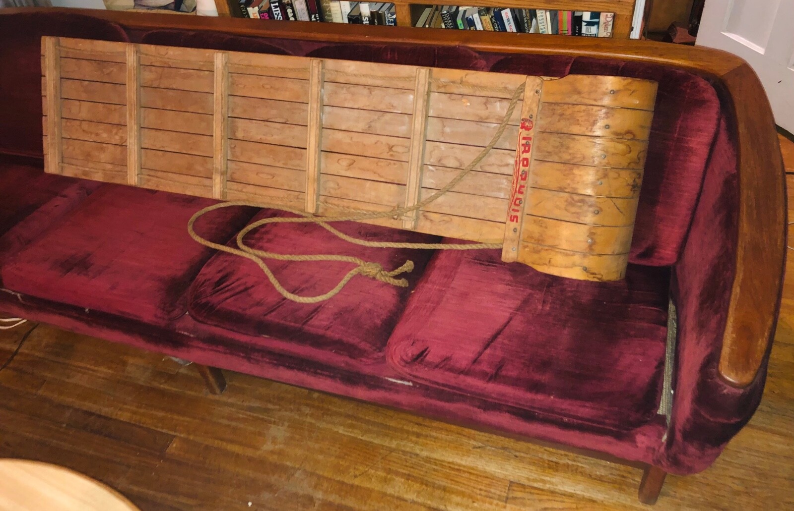 как выглядит Vtg 1950s/60s Canadian Iroquois Indian 6ft WOOD TOBOGGAN Snow Sled 72" фото