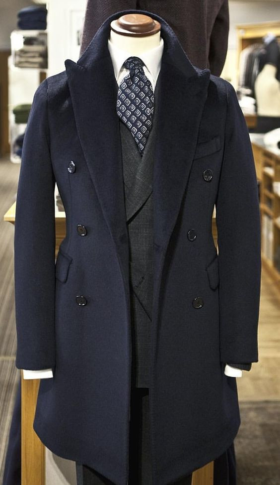 как выглядит Black Wool Mens Long Overcoat Peak Lapel Double Breasted Winter Business Coat фото