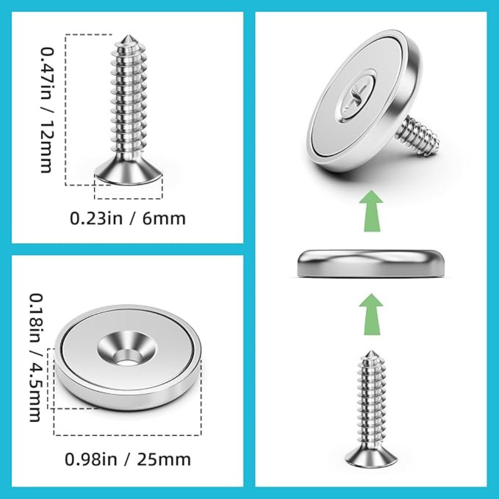 • 10 Pack Neodymium Magnets Cup Magnets with Countersunk Hole, Strong round Base R