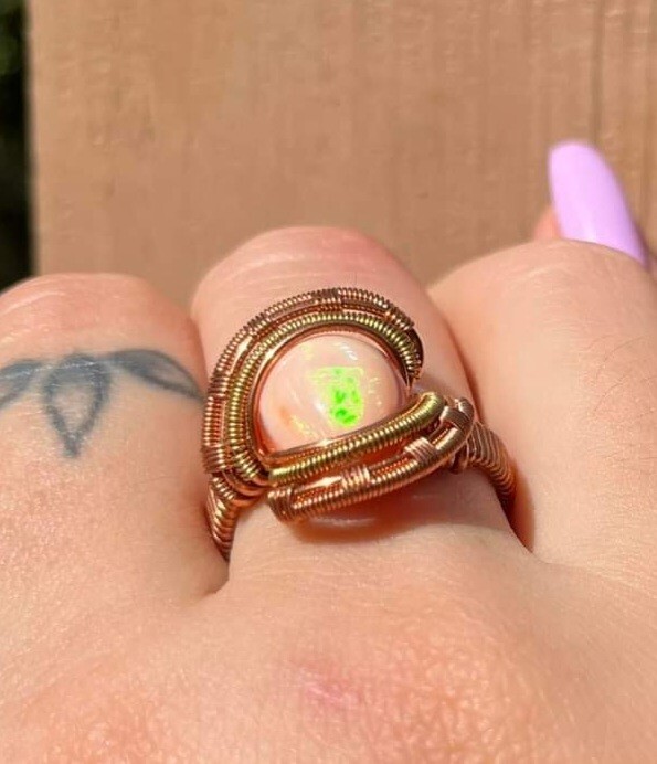 как выглядит Fire Opal Ring In Copper - Handmade In USA фото