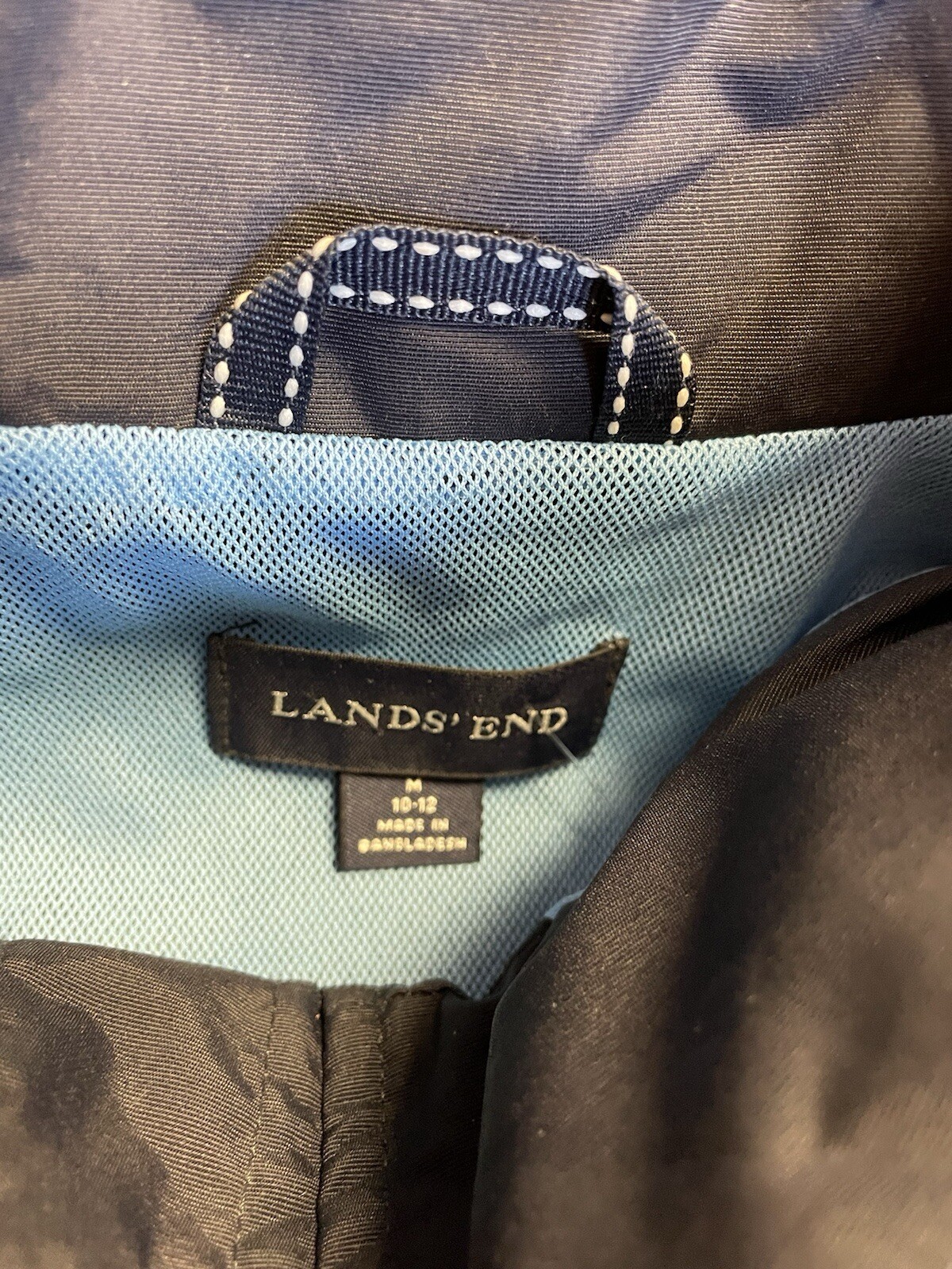 как выглядит Lands End Blue Women s M 10-12 Rain Jacket Hood In Collar фото