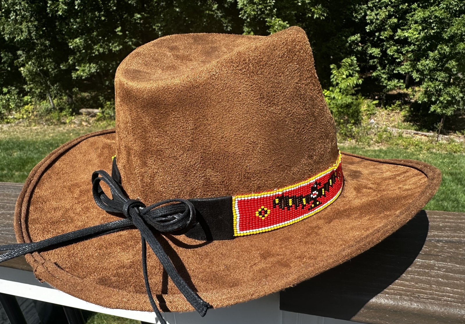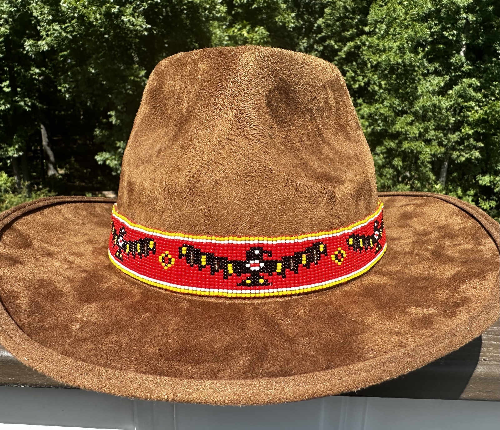 Handmade Beaded Native style Red Black Eagle Cowboy Hatband