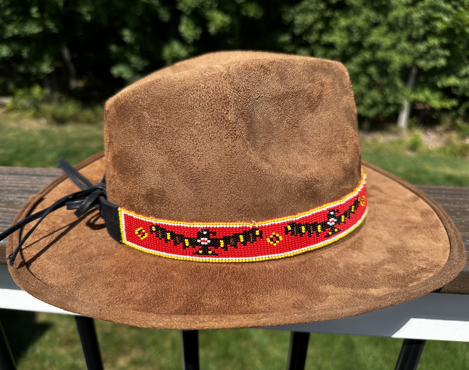 как выглядит Handmade Beaded Native style Red Black Eagle Cowboy Hatband фото