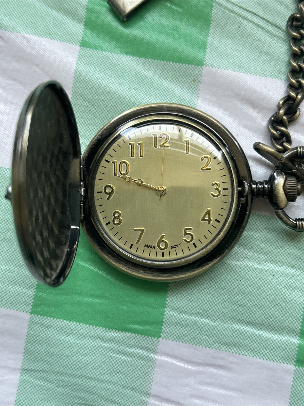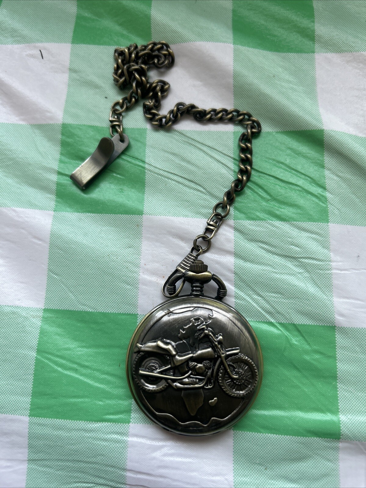 как выглядит Motorcycle Bronze Tone Quartz Pocket Watch фото