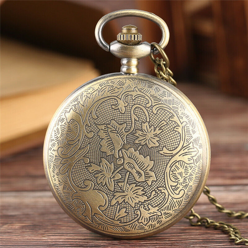 Womens Quartz Pocket Watch Necklace Pendant 80CM Chain Blue Crystal Flower Gift