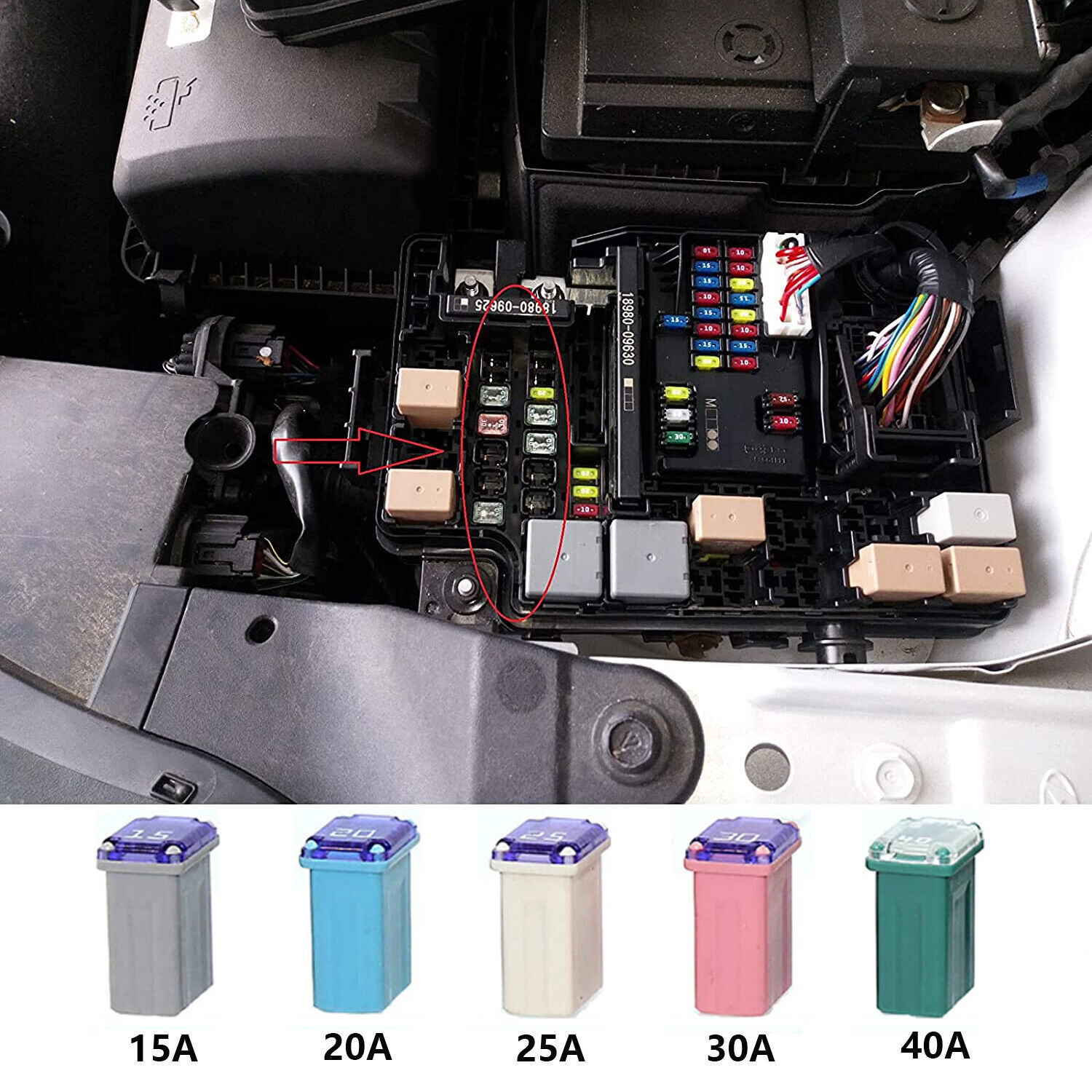 25x Slow Blow Micro Cartridge Fuse Assortment 15A-40A MCASE - FMM Type Fuses
