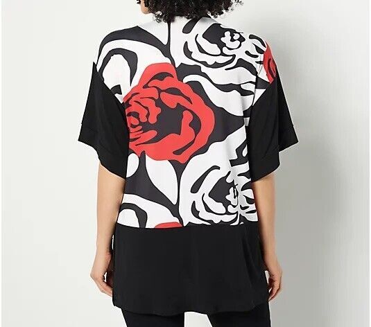 Truth Style Printed Solid Jersey Open Front Jacket Red Combo M NEW A491565