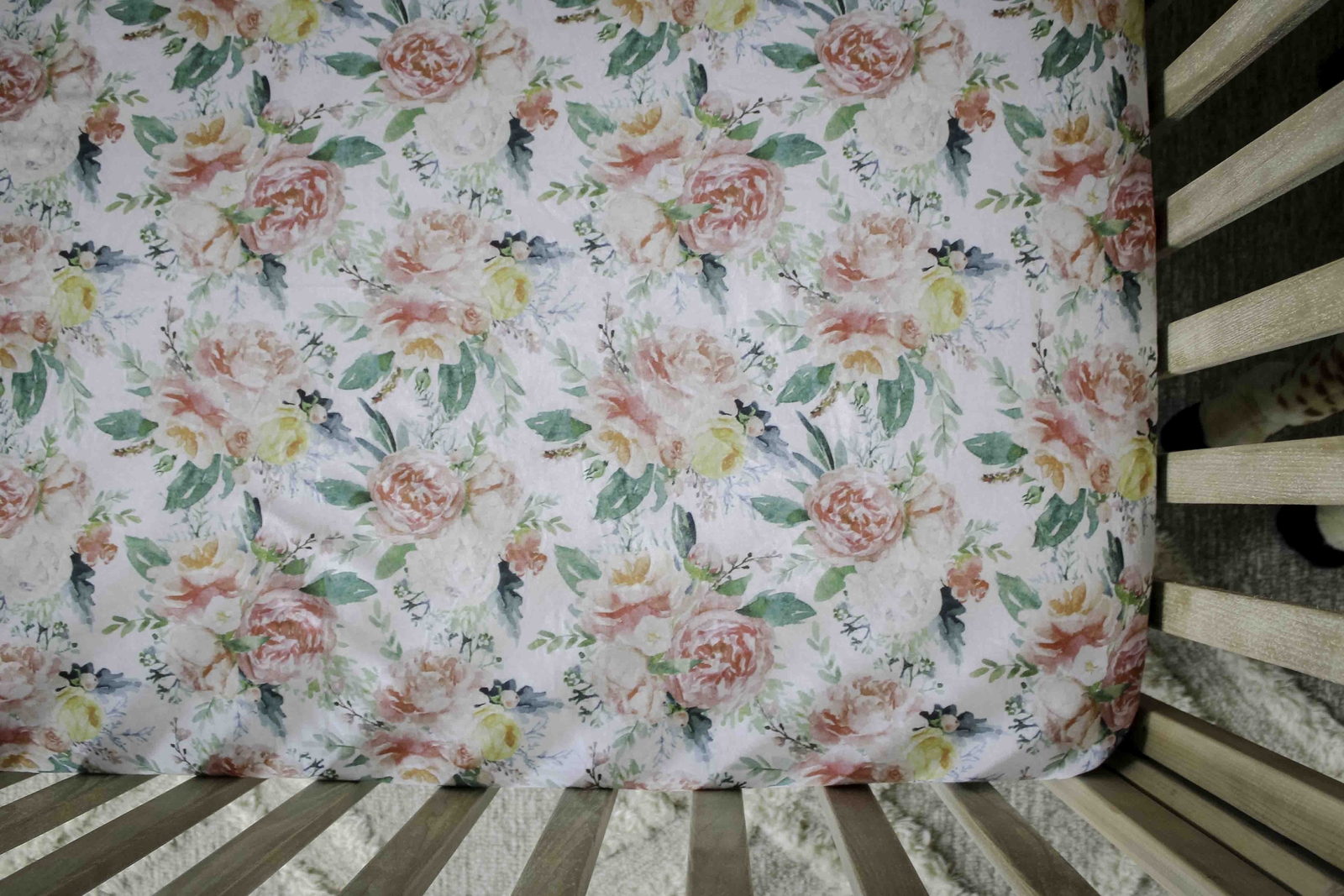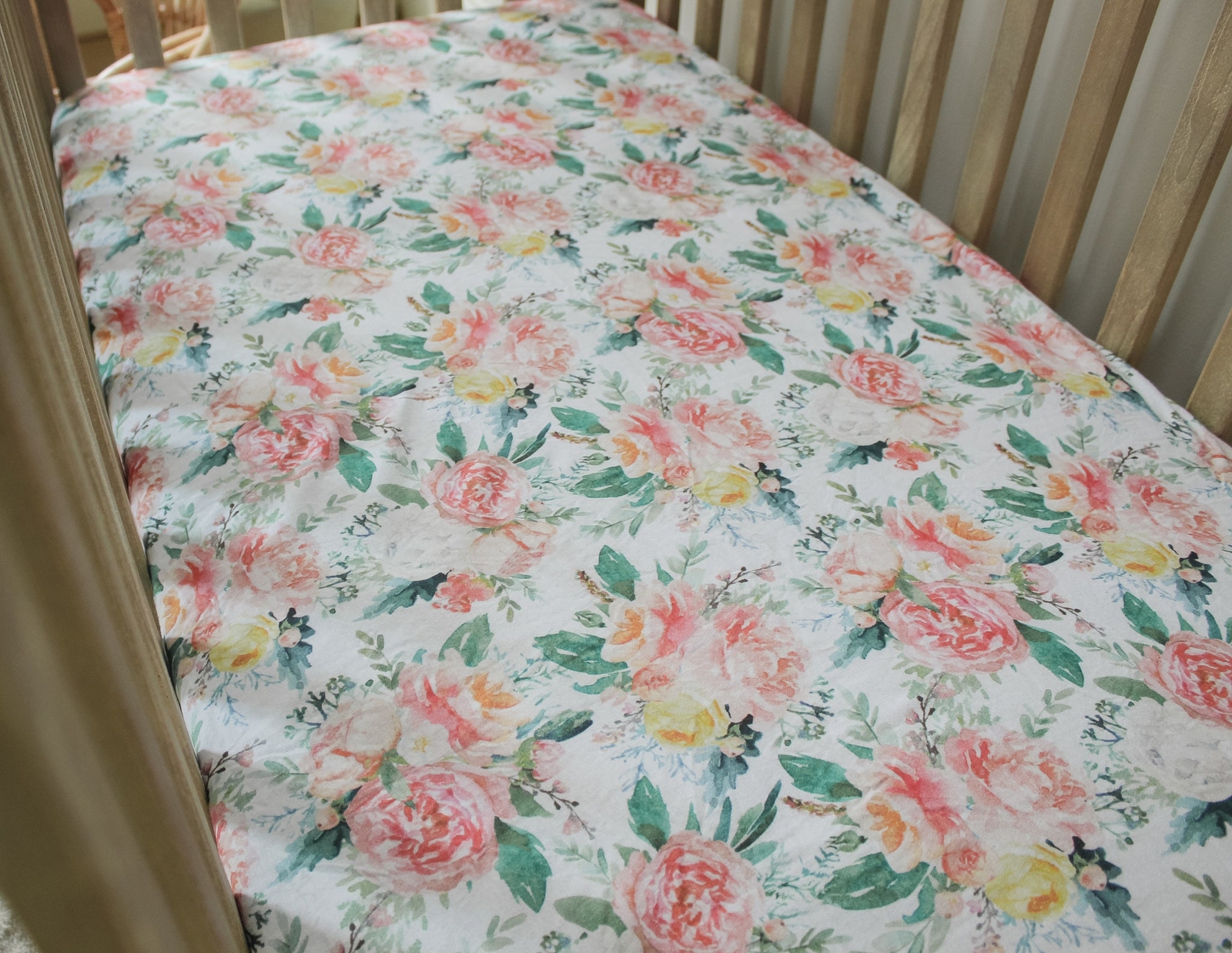 Peonies and Roses Fitted Crib Sheet - 100 Cotton Baby Bedding for Girl Nursery