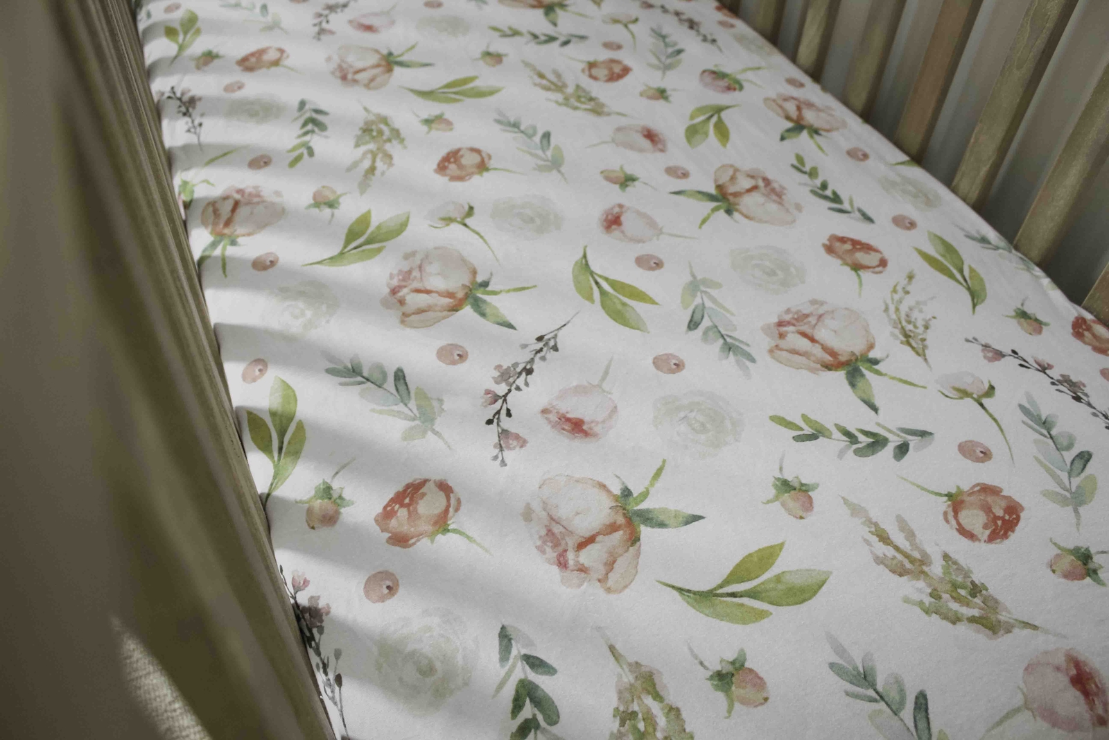 Peony Fitted Crib Sheet - 100 Cotton Baby Bedding for Girl Nursery Floral