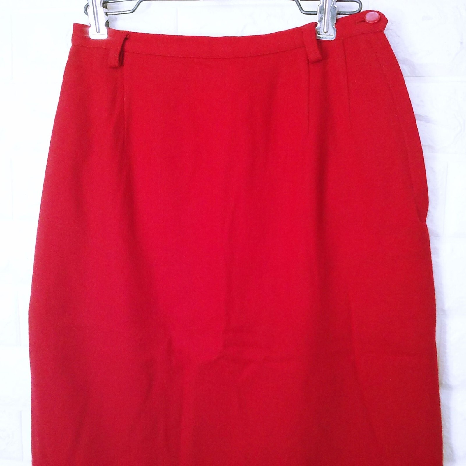 как выглядит Vintage 70s Tailored Pencil Skirt Lady-S 4 USA Union-Made Wool Kick-Pleat Red фото