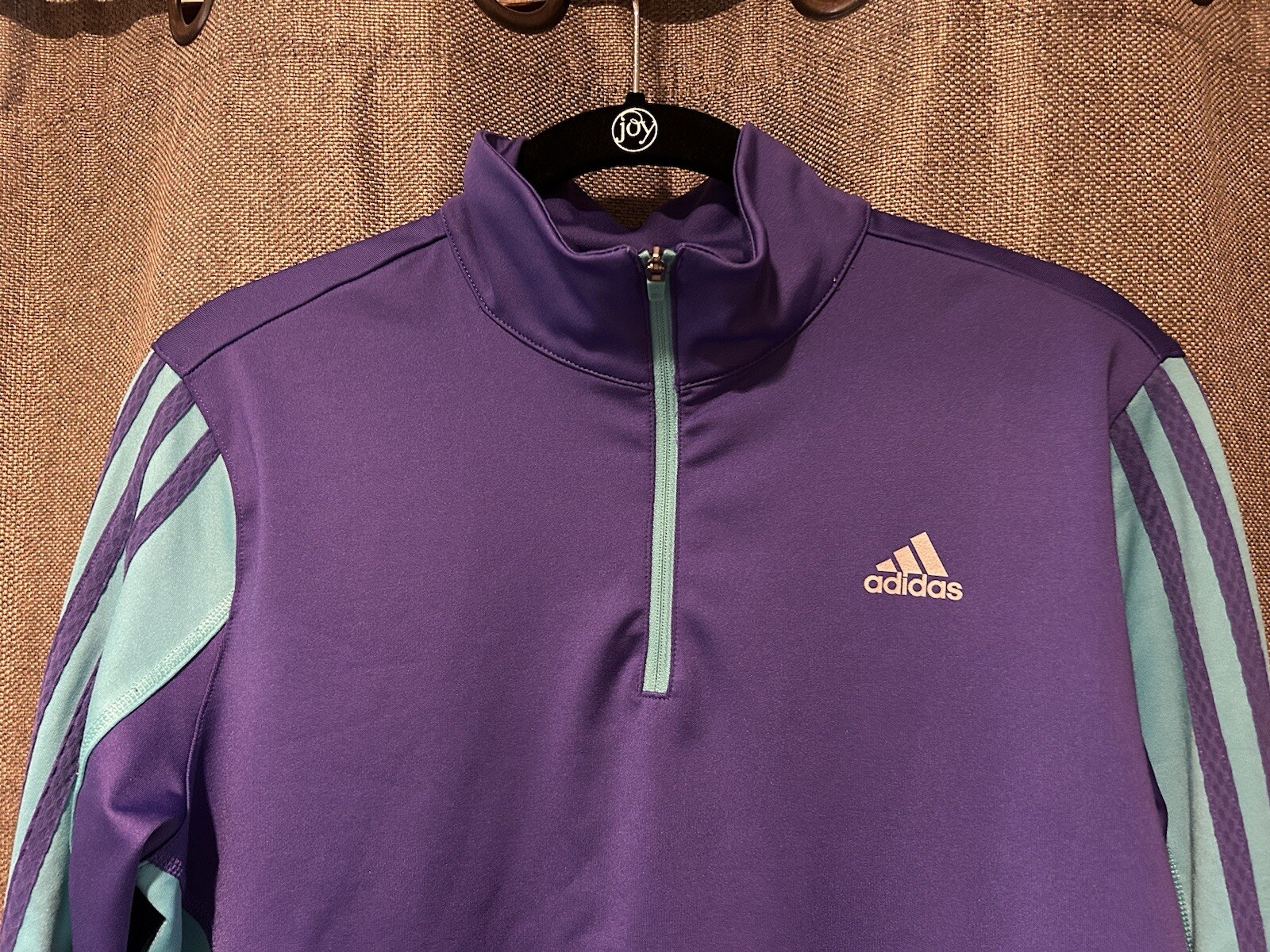 как выглядит Adidas Womens Climalite Purple/Teal 1/4 Zip Pullover Track/Workout Jacket Sz M фото
