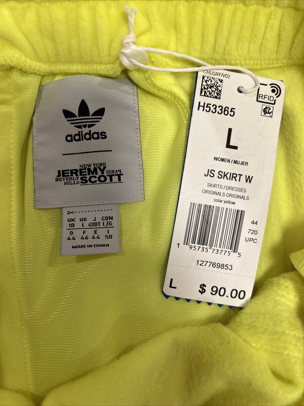 как выглядит Adidas Originals Womens Yellow JEREMY SCOTT Fashion SKIRT H53365 Size L NWT фото