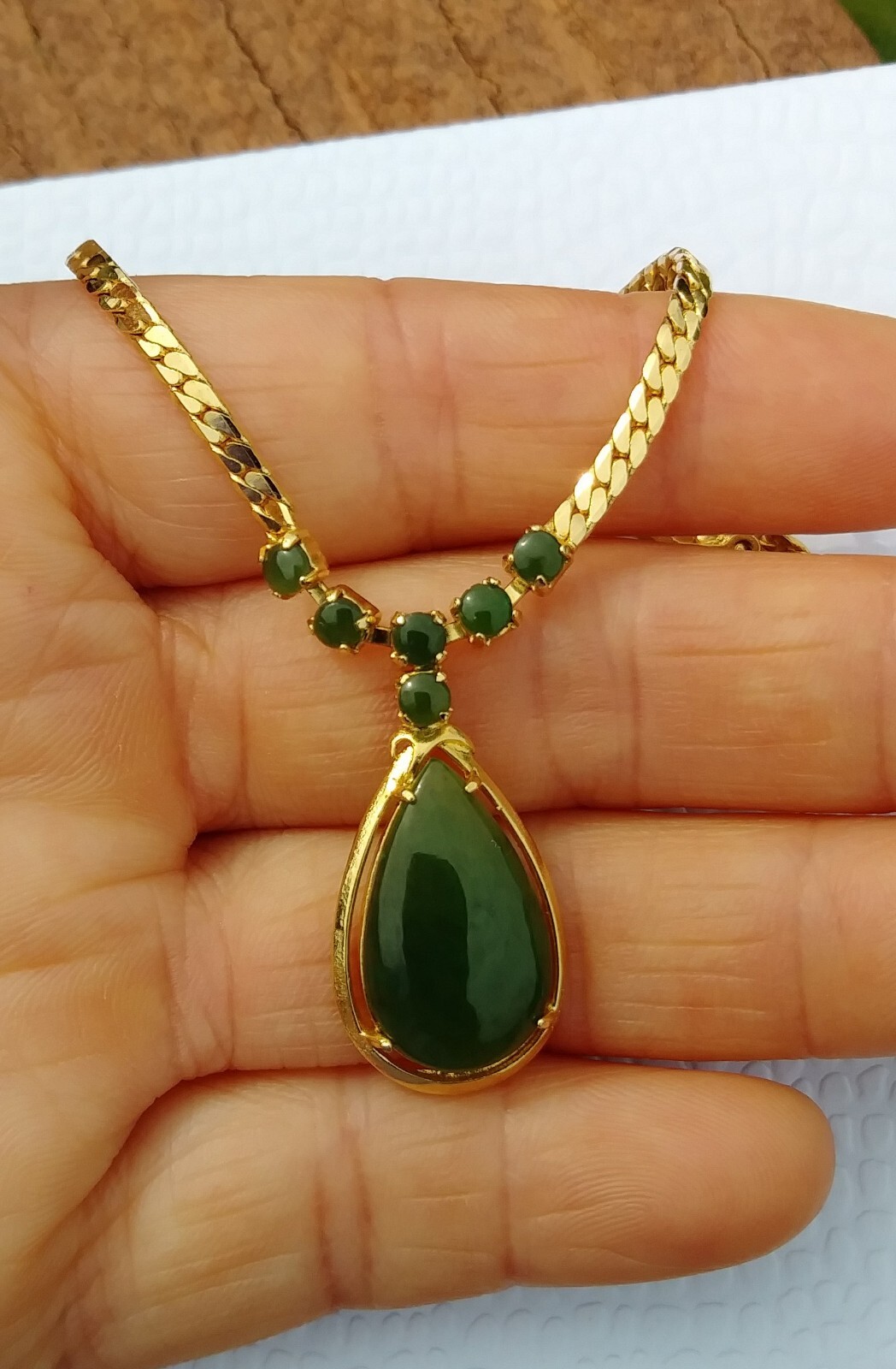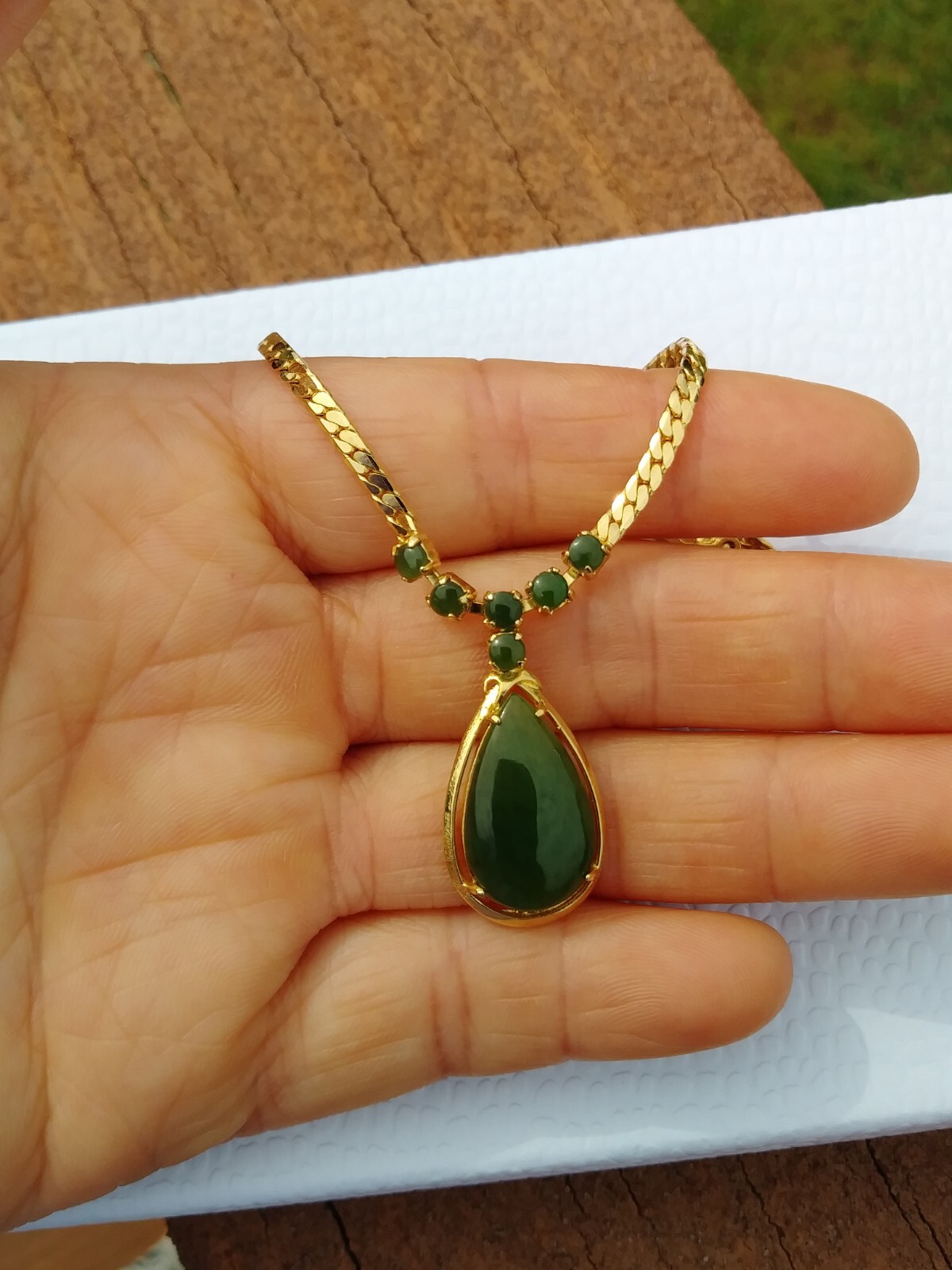 как выглядит High quality genuine Canadian nephrite green teardrop gp necklace 18 фото