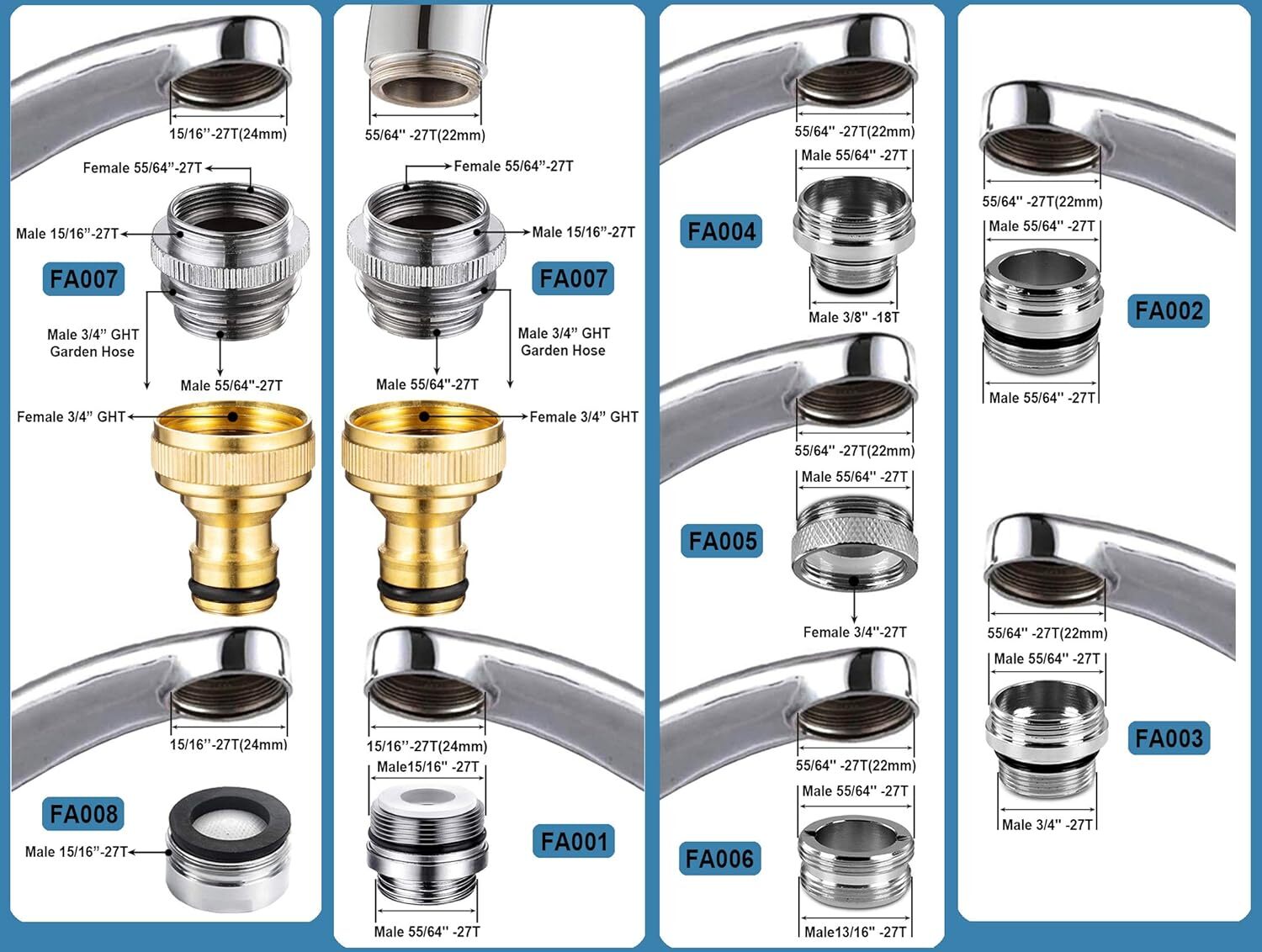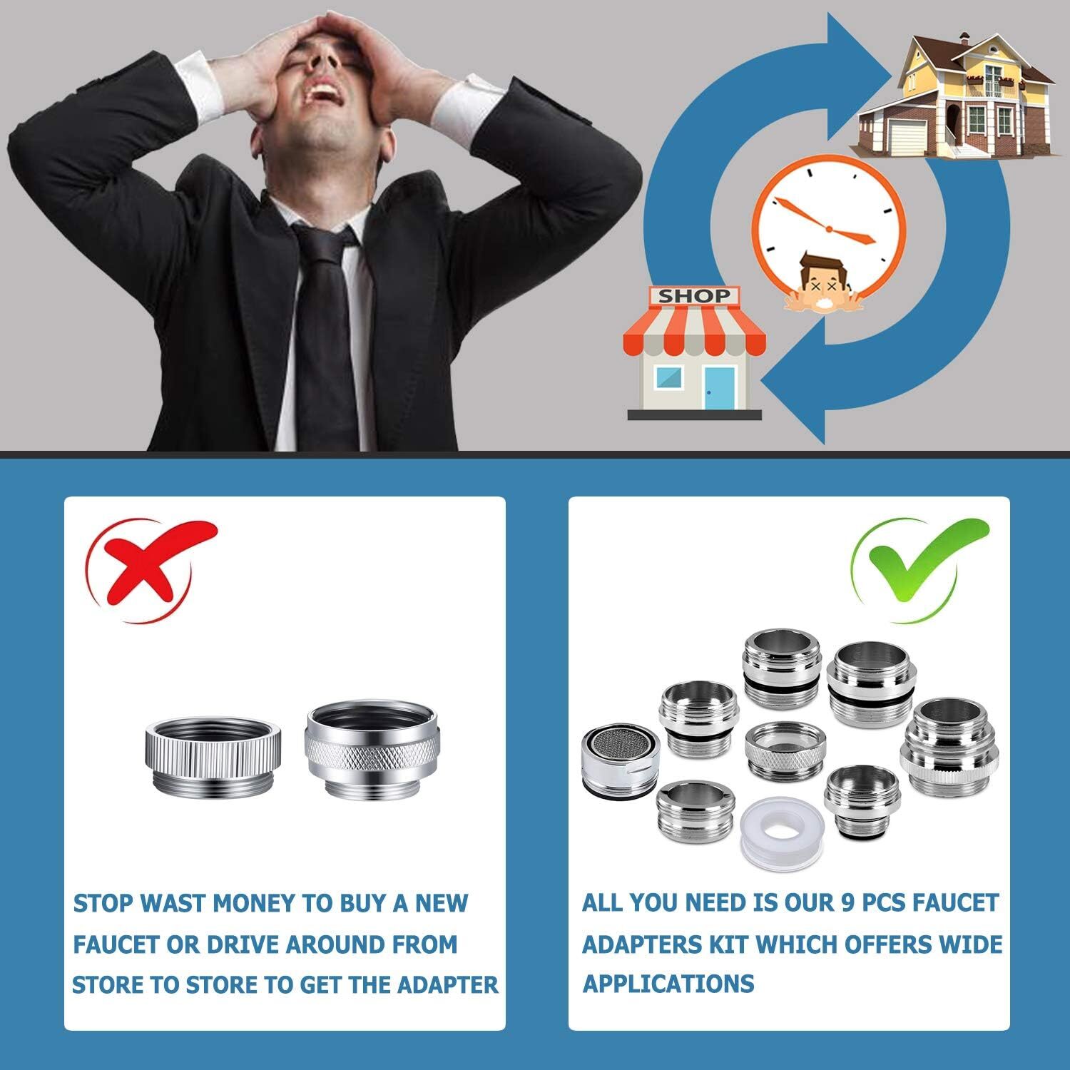 9 Pieces Faucet Adapter Kit, Brass Aerator Adapter Male Female Kitchen Sink Fauc