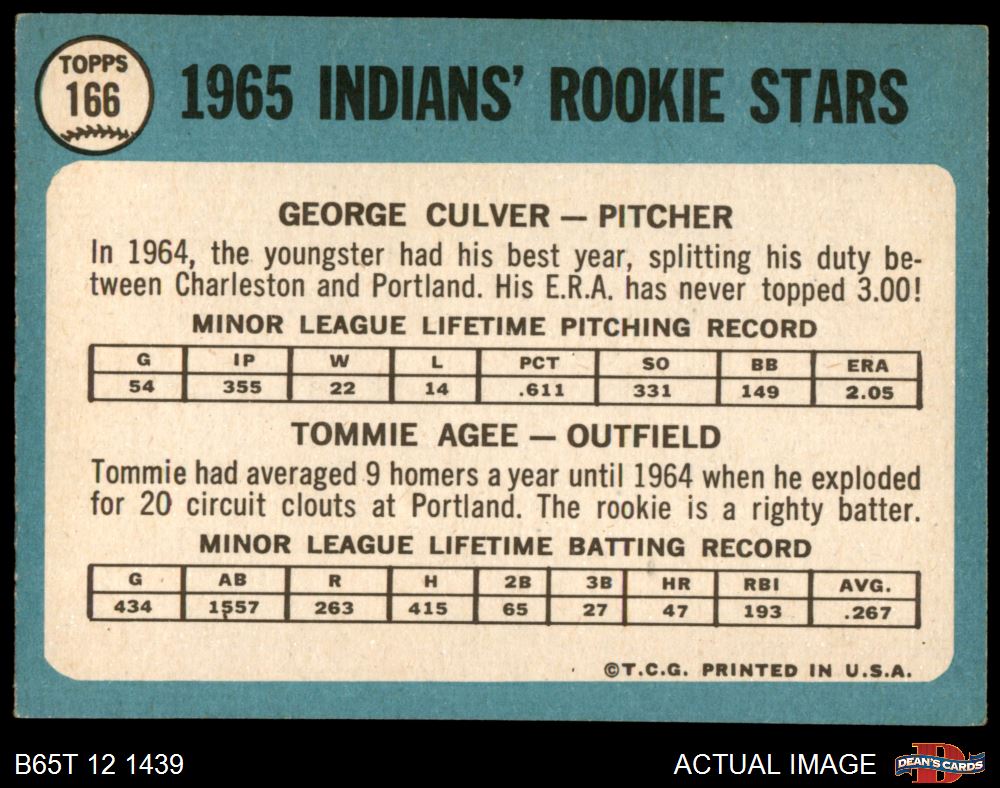 1965 Topps 166 Tommie Agee / George Culver Indians RCs RC 4 - VG/EX