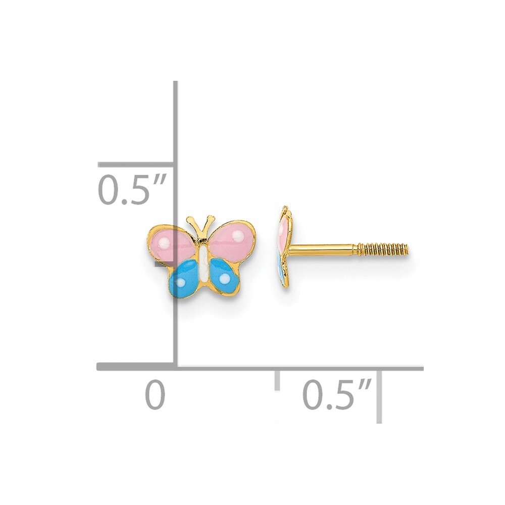 14k Yellow Gold Polished Enameled Butterfly Screwback Stud Earrings 0.25gm