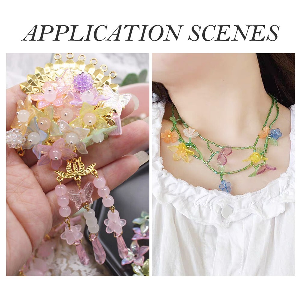 как выглядит 80Pcs 5-Petal Flower Acrylic Bead Caps For DIY Jewelry Making Finding 24x26x5mm фото