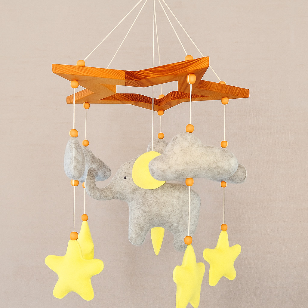 Elephant baby mobile Felt Nursery Crib Neutral Baby Mobile Handmade Baby Gift