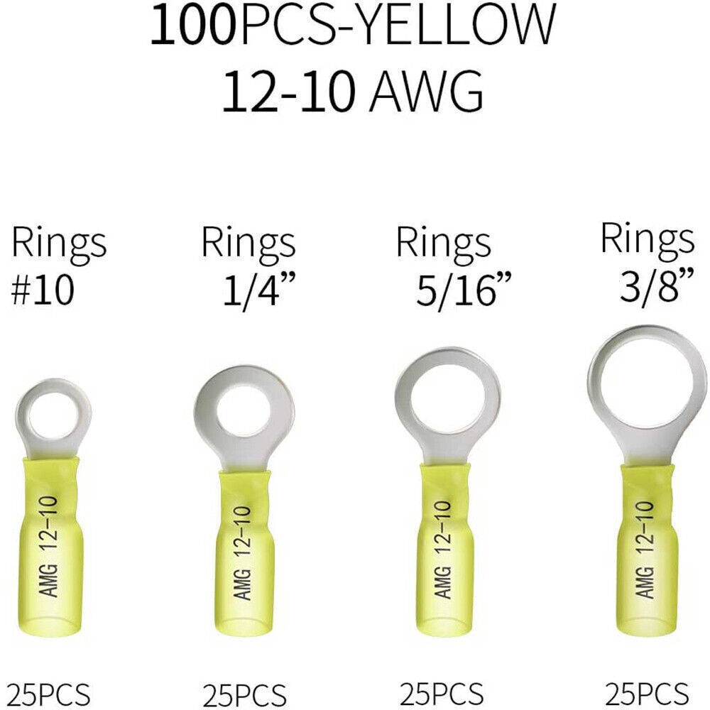 100Pcs Ring Eyelet Heat Shrink Wire 12-04AWG Connector Terminals M5 M6 M8 M10