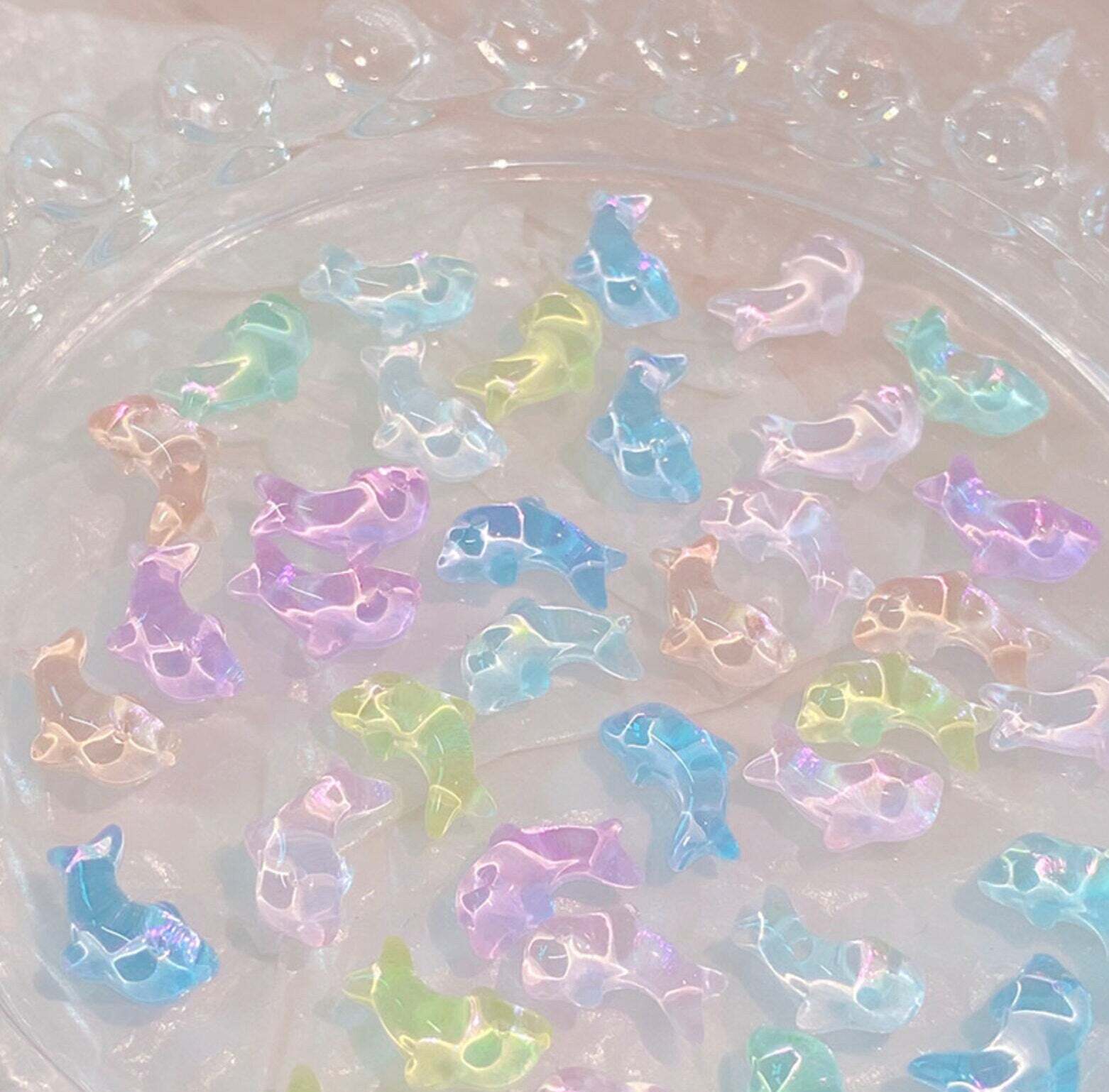 Mixed Color Translucent Dolphins, Animal Nail Art Charms, Mini Cabochon