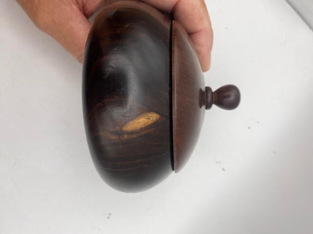 Lathe turned wood bowl with fitted lid 4.5 dia and 3.25 tall Unsigned
