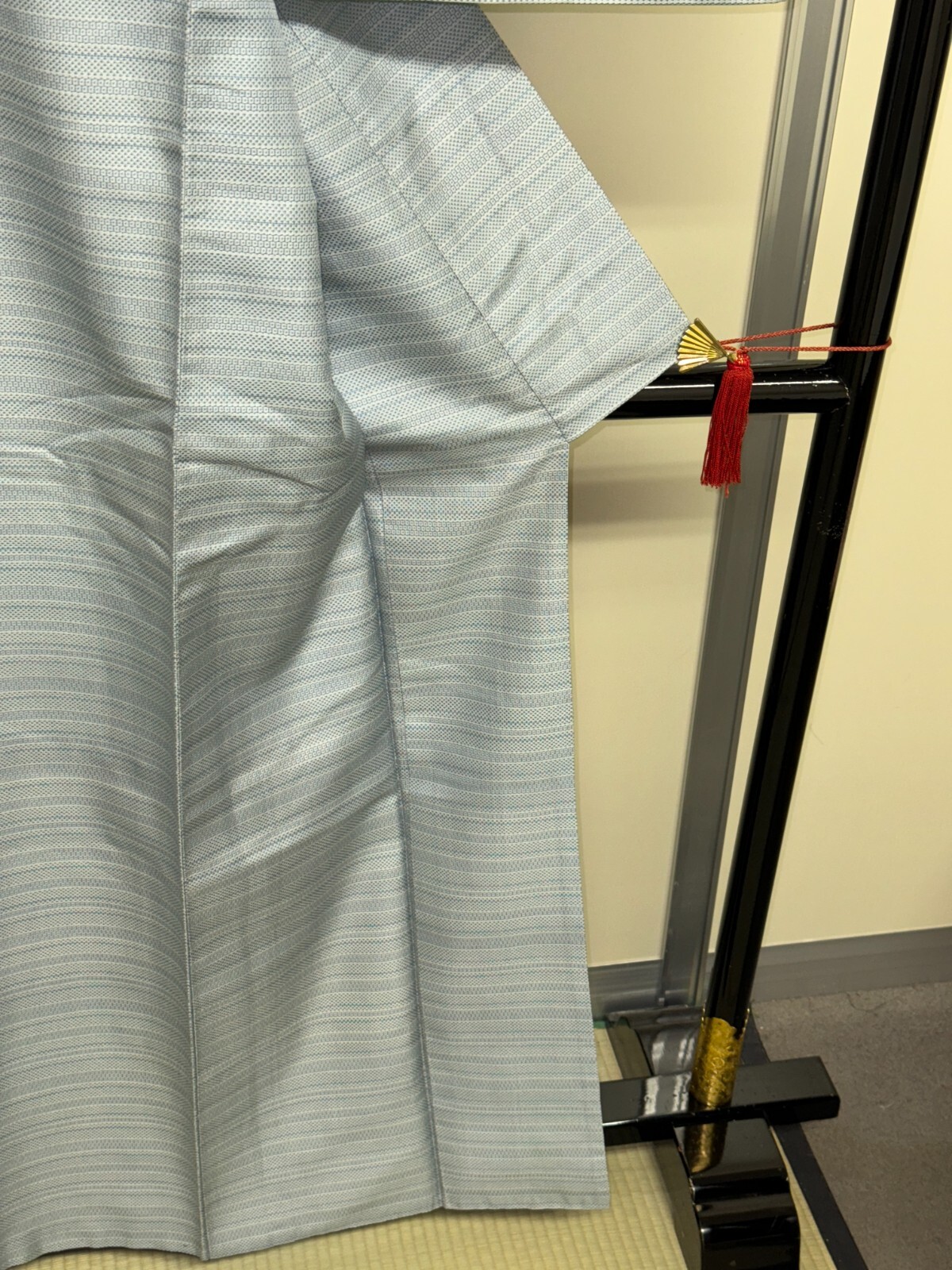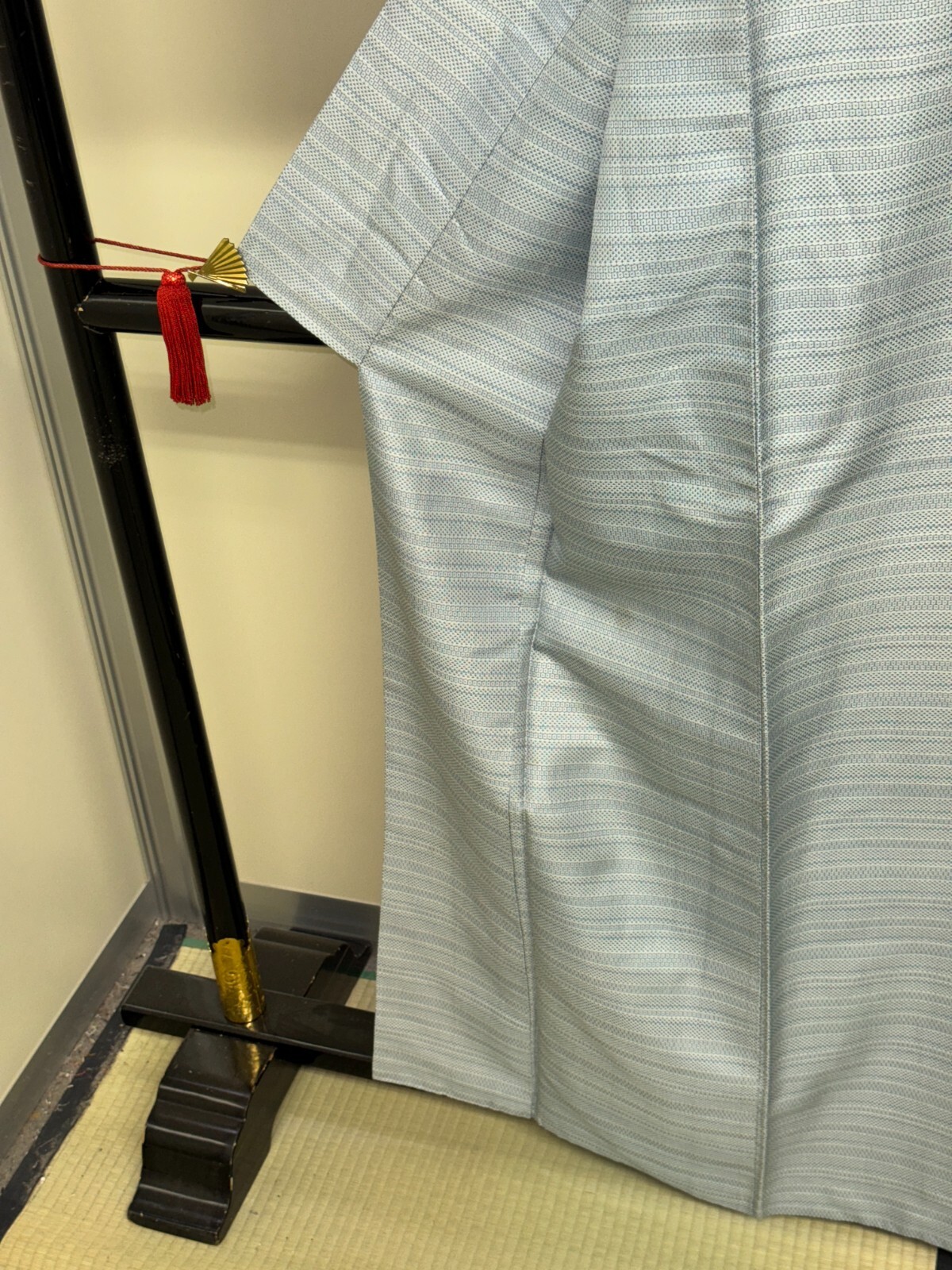 как выглядит Japanese Vintage Kimono Pure Silk Light Blue Tsumugi Expensive Dirt Height 22in фото