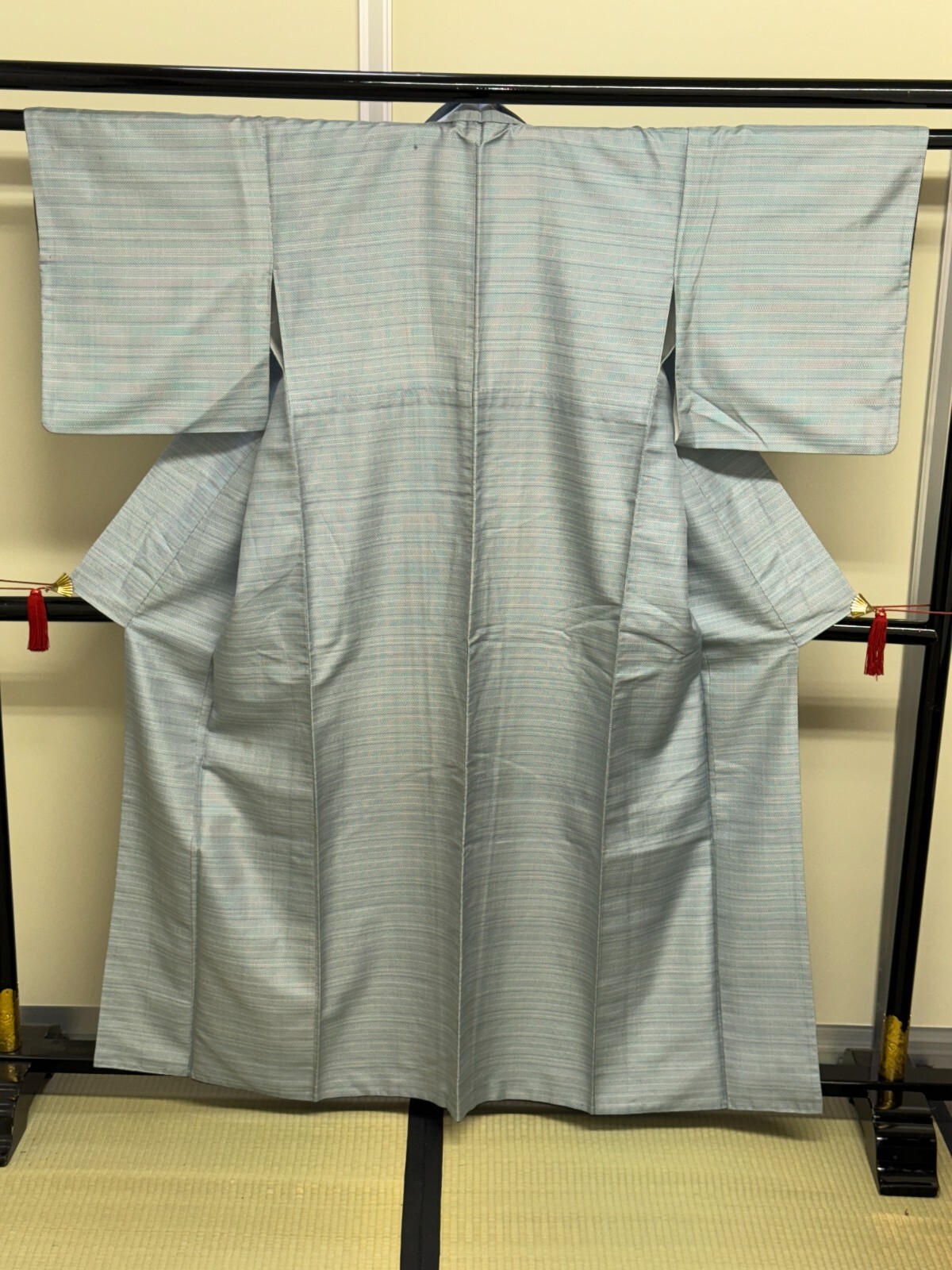 Japanese Vintage Kimono Pure Silk Light Blue Tsumugi Expensive Dirt Height 22in