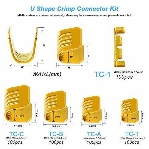 500 Pcs MIX U Shape Copper Ring Terminals Crimp Kit - Non-Insulated