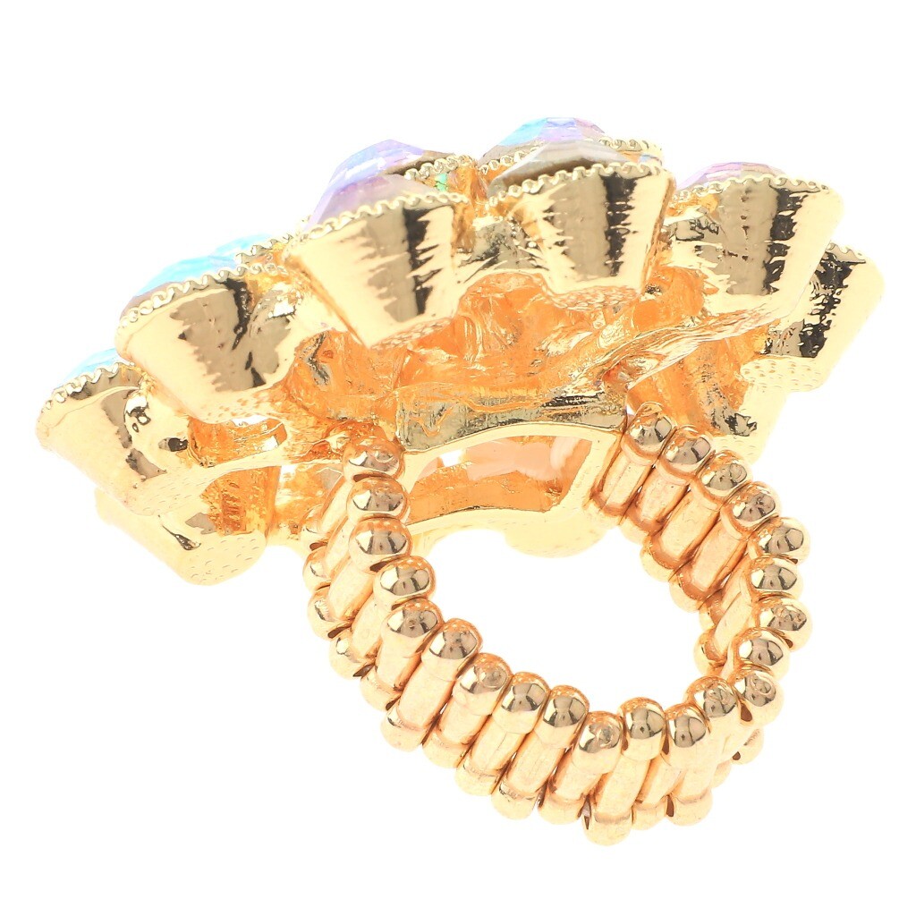 Gold Tone Stretch Metal Flower Ring With Rhinestone R1269-GAB
