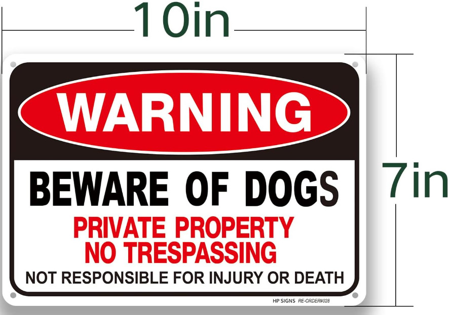 Beware of Dog Sign Private Property No Trespassing Dog Warning A:10x7 in - 2pcs