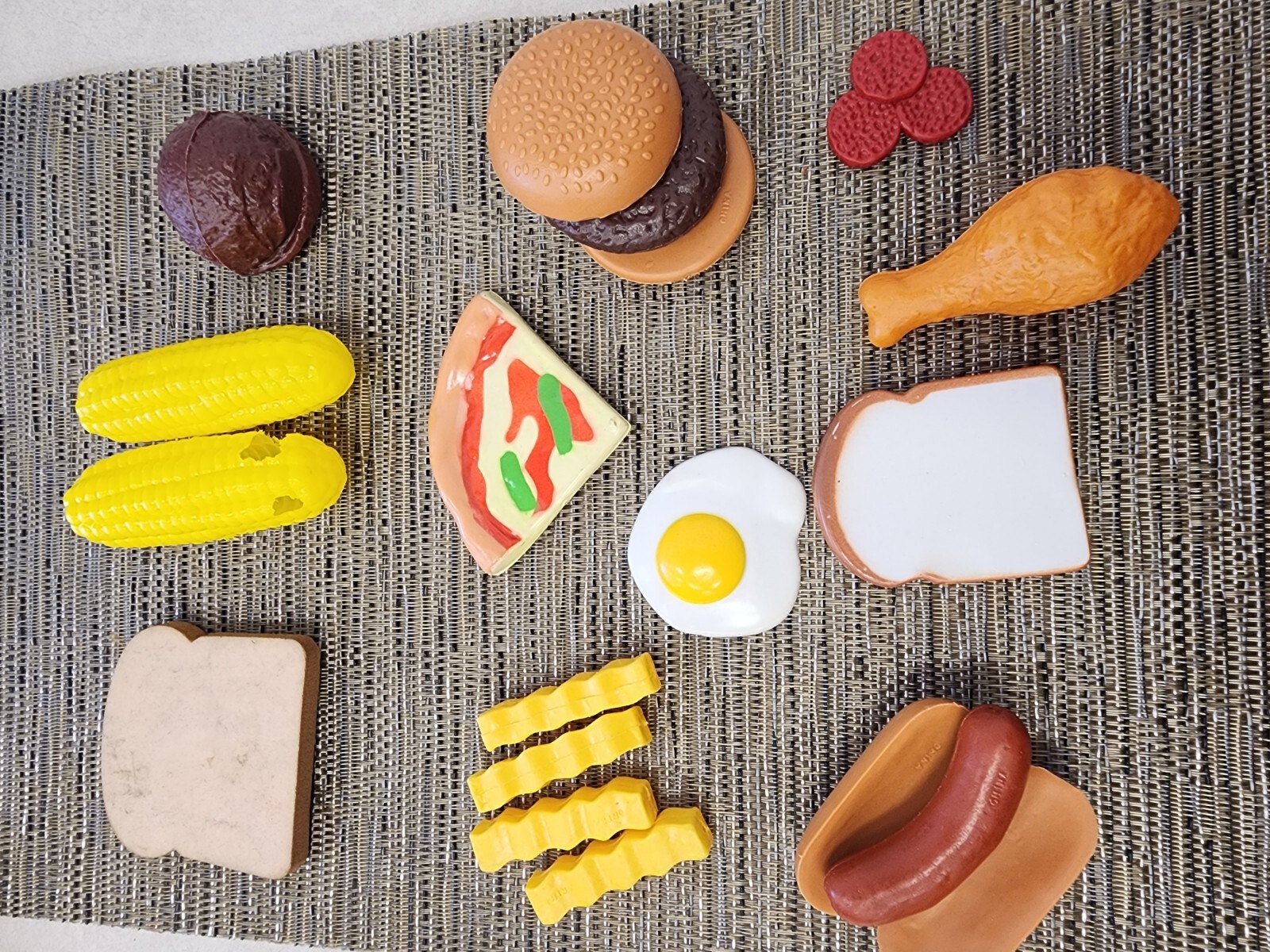 Pretend Play Food Lot 18 Pieces Hamburger Hot Dog Egg Corn Bread Fries Pizza Ckn