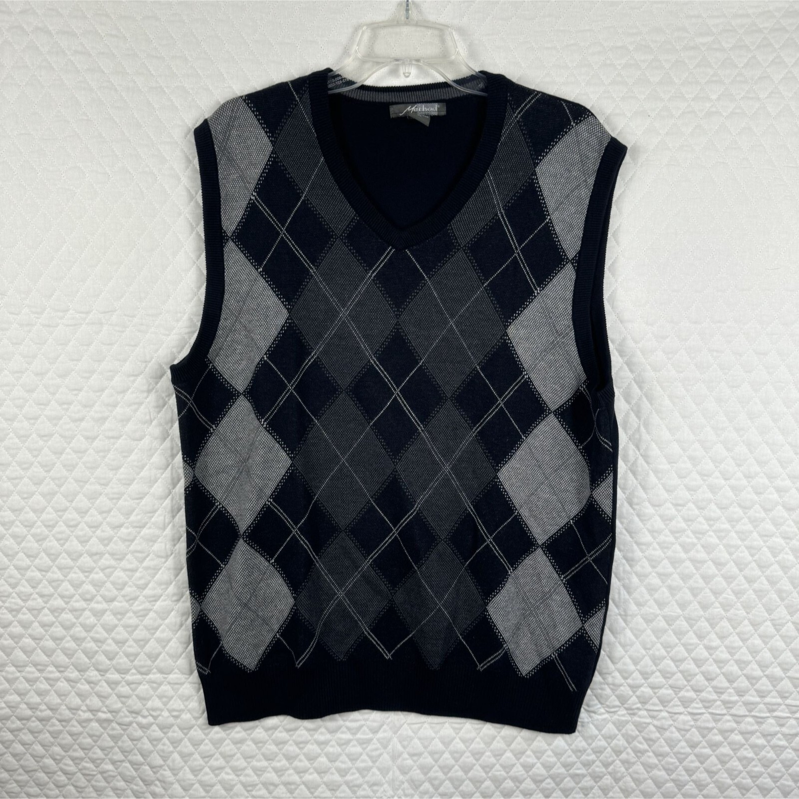 Mens Sleeveless Argyle Sweater Vest Navy Gray Diamond Pattern XL Grandpacore