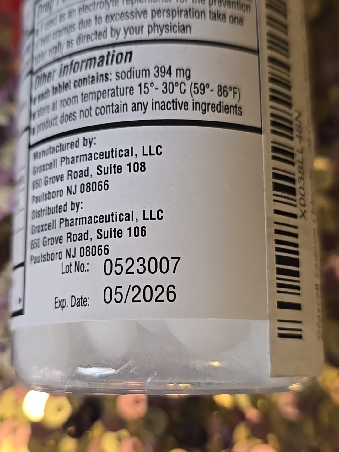 SODIUM CHLORIDE 1 GRAM TABLETS 100 COUNT Lot 2